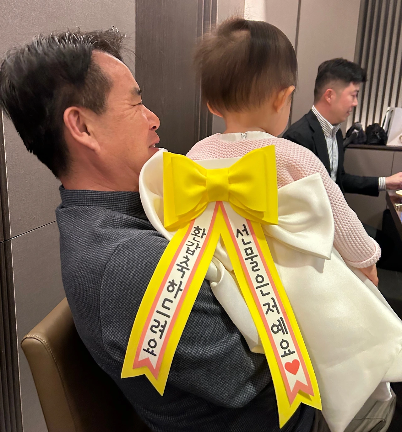 아들과 며눌님의 축하 꽃다발 전달을 시작으로