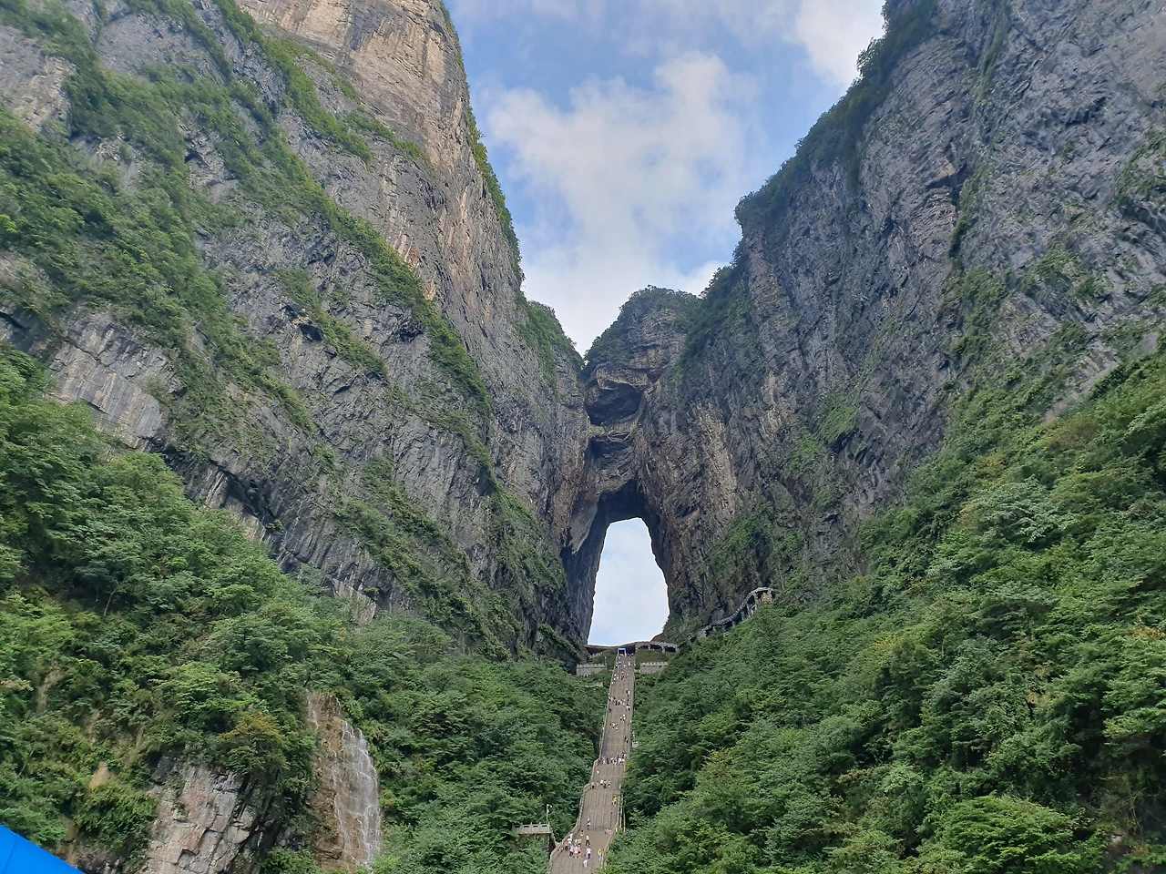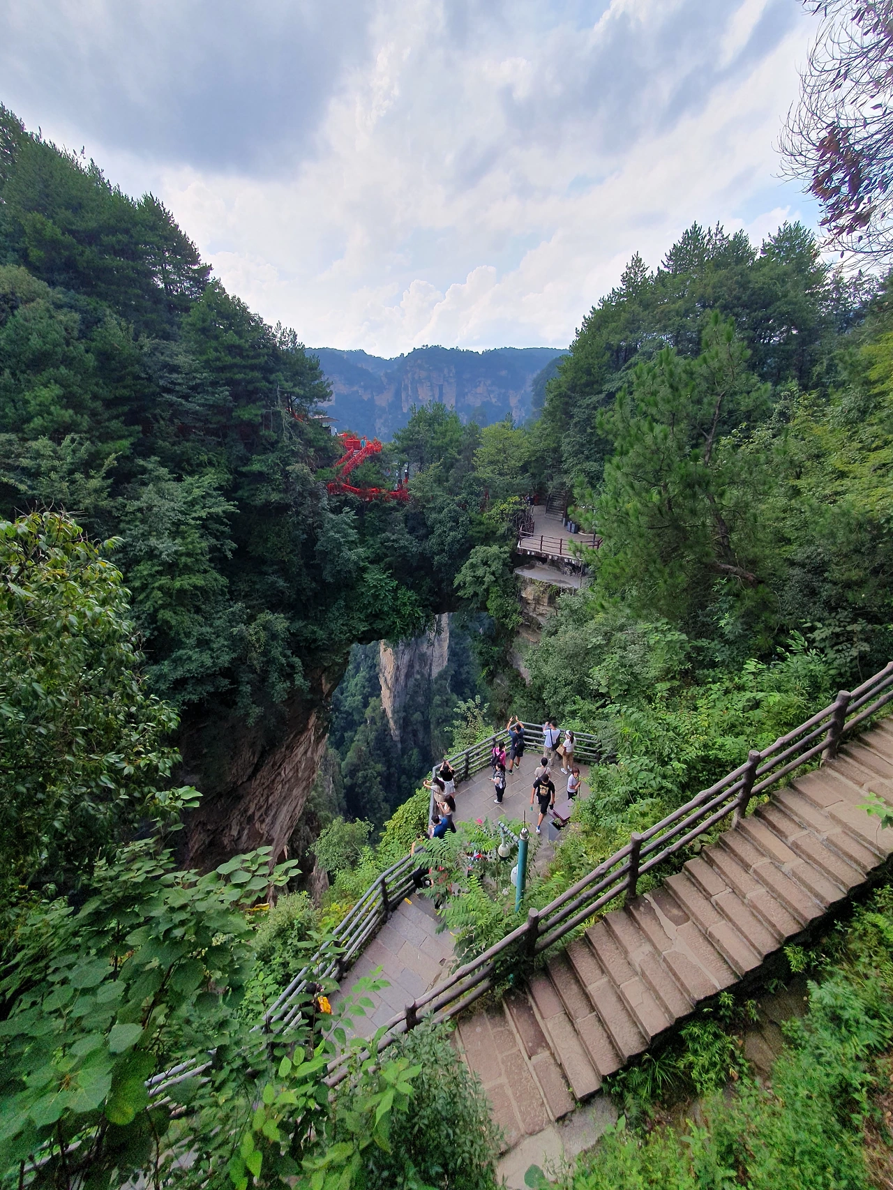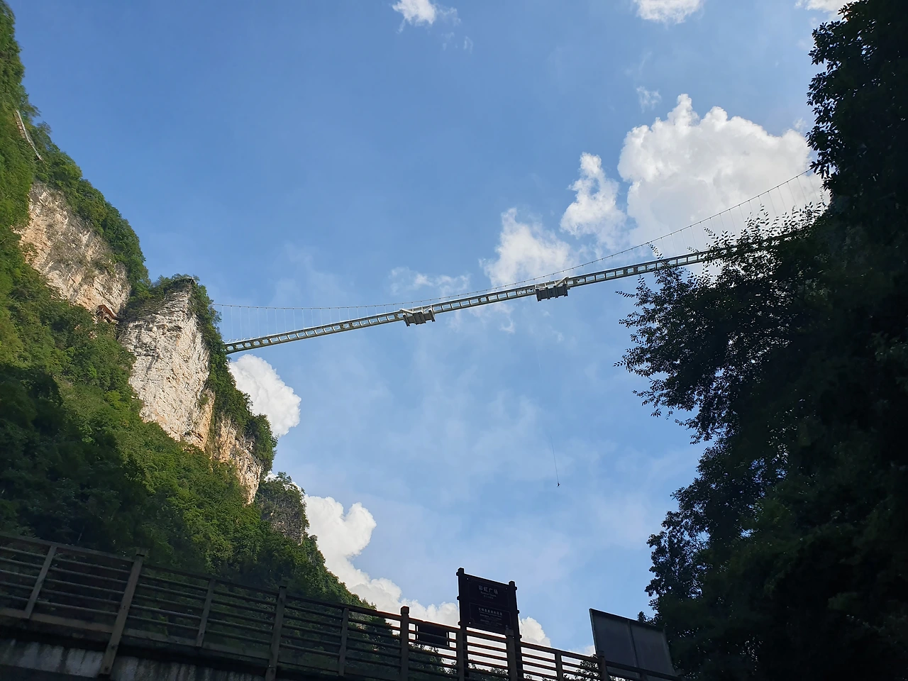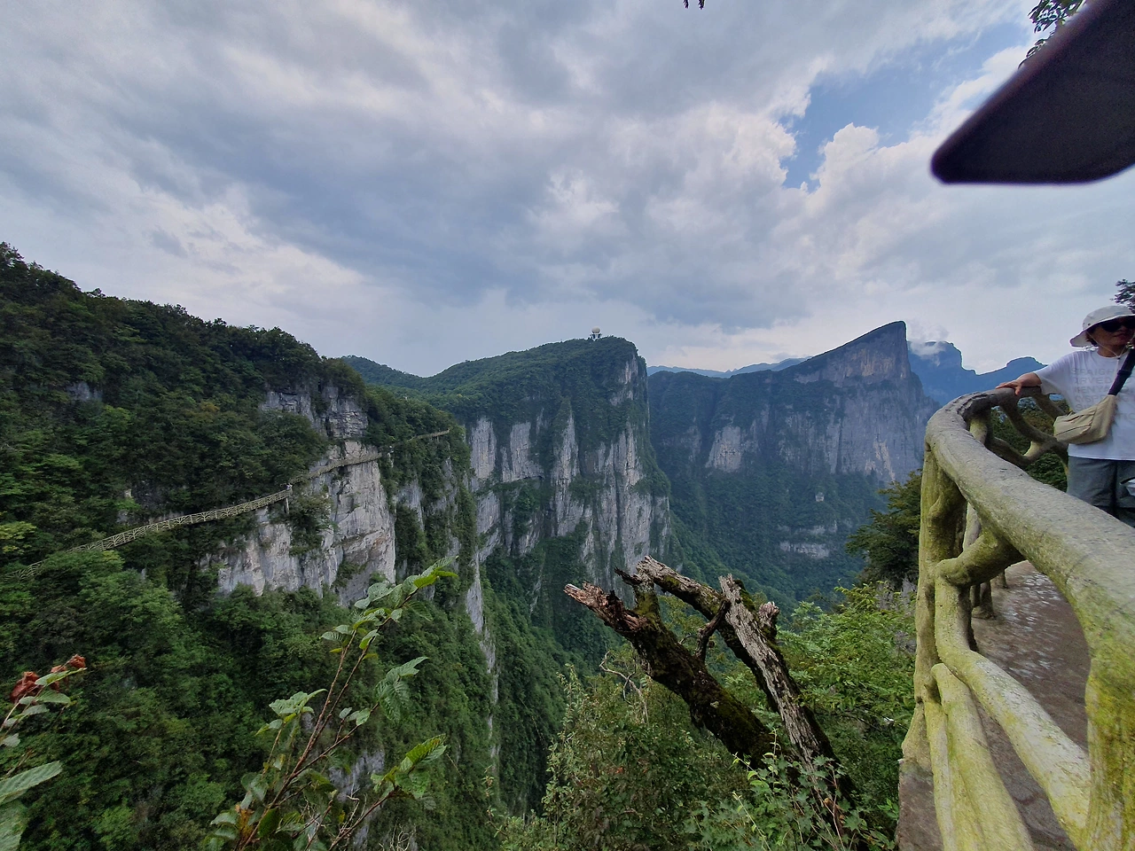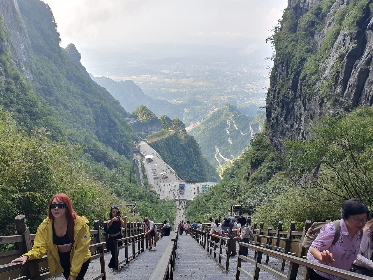 케이블 카를 타고 7.45Km 거리를 30분 동안 이동해 1,500m 높이의 천문산 전망대로 올라 간 후, 깎아지는 절벽에 설치된 폭 1.6미터 길이 1.6Km 길이의 잔도를 걷는 코스였다.