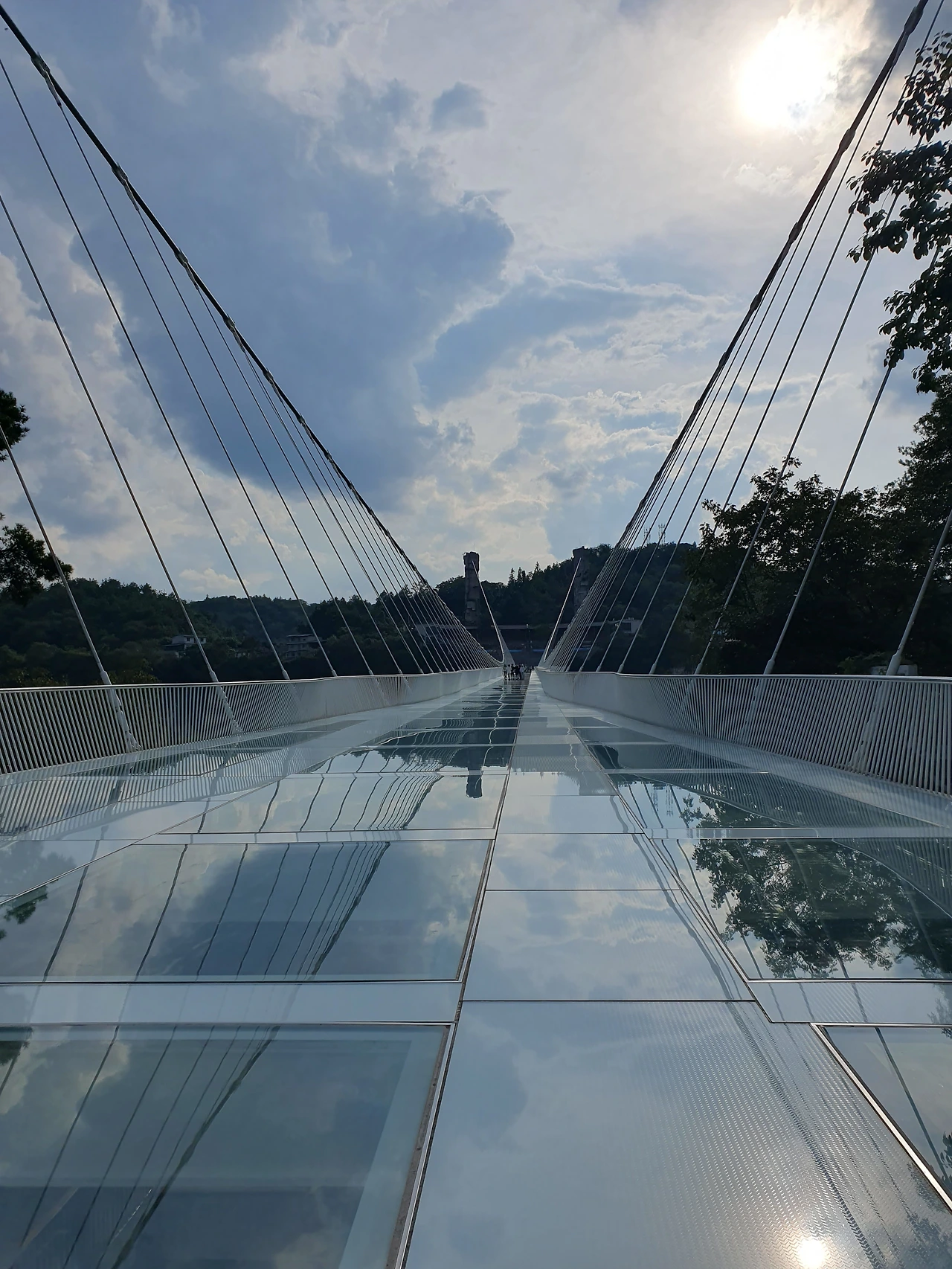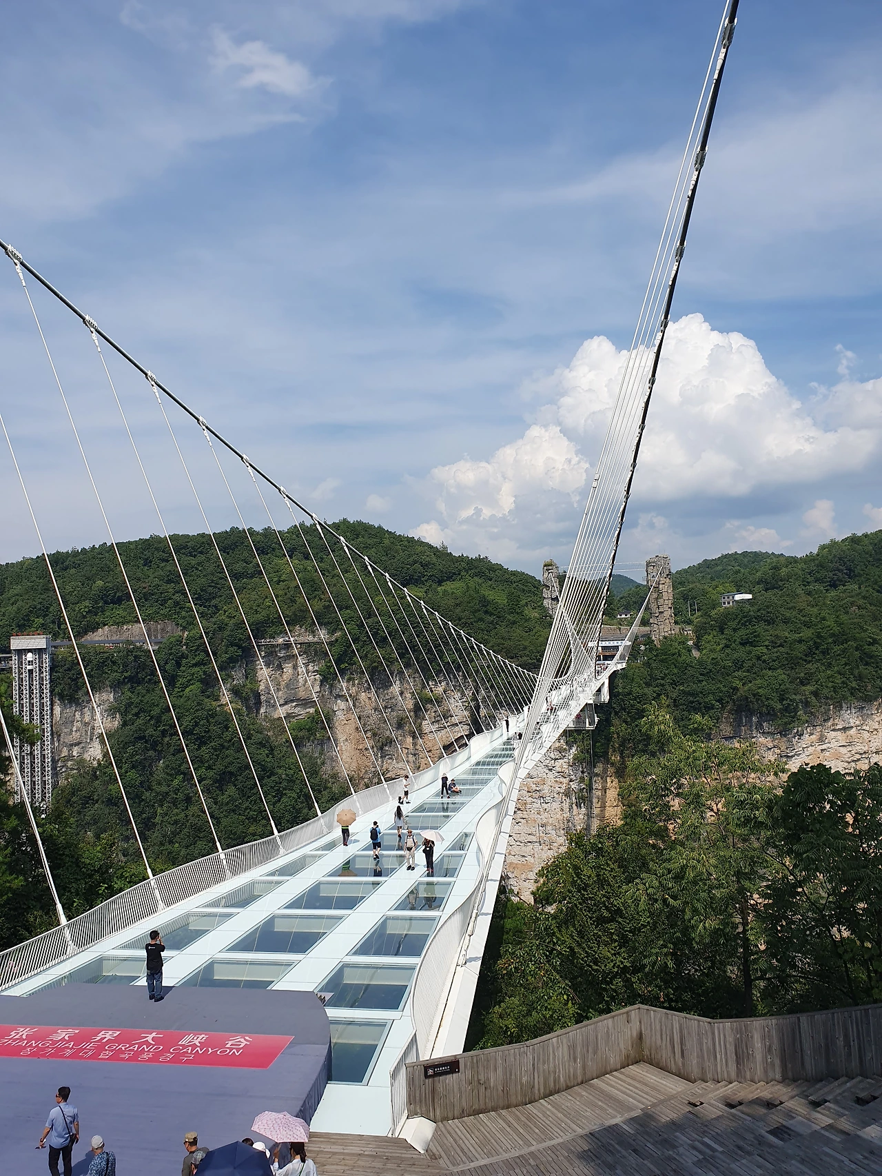 교각 없이 설치된 유리대교는 길이 460m로 세계에서 가장 길고 높이 설치된 인도교라고 한다.