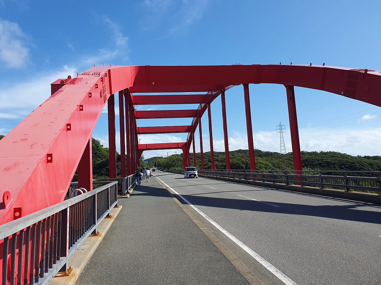ㆍ상대마와 하대마를 잇는 붉은 다리인 만제키바시와 섬과 바다를 조망할 수 있는 만제키바시 전망대.