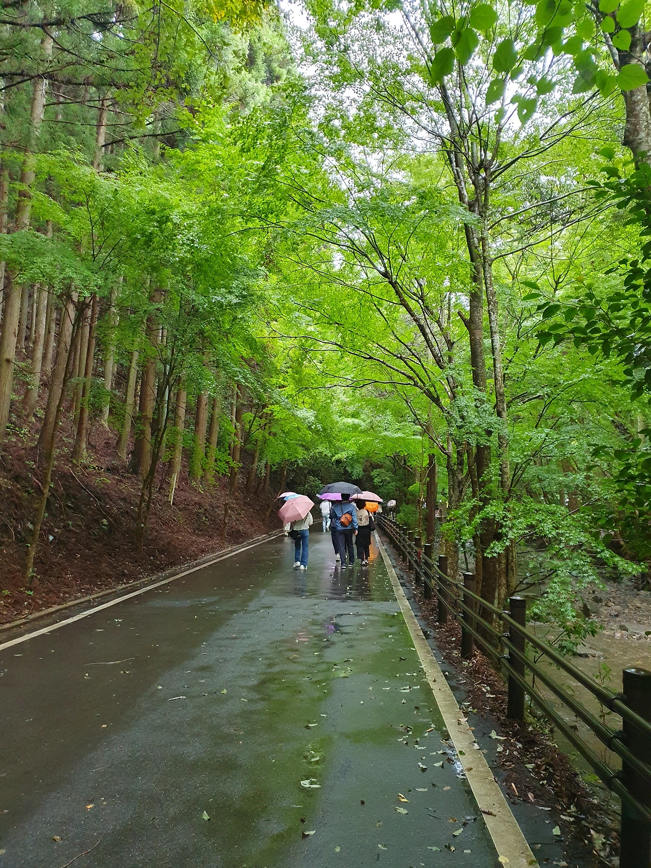 다행히 오전에 비가 잦아들어 우산을 쓴 채 슈시 편백나무 숲길을 산책할 수 있었고 와타즈미 신사는 비록 버스차창밖 관광이었지만 바다에 세워진 토리이를 빗속에서 볼 수 있어 더욱 운치가 있었다.