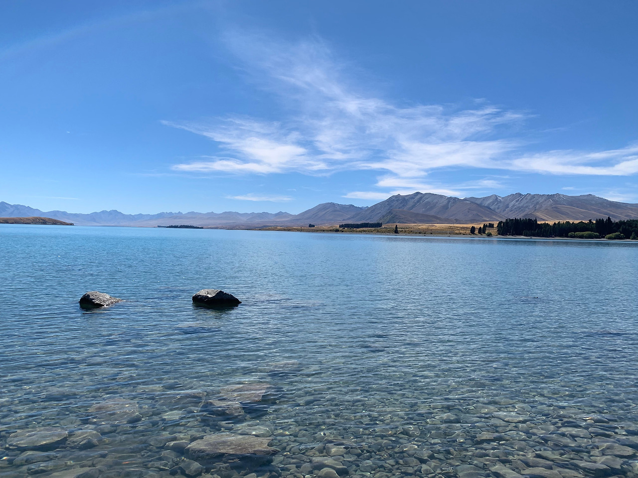 데카포 호수의 맑은 수정처럼 맑은 물과 하늘_뉴질랜드