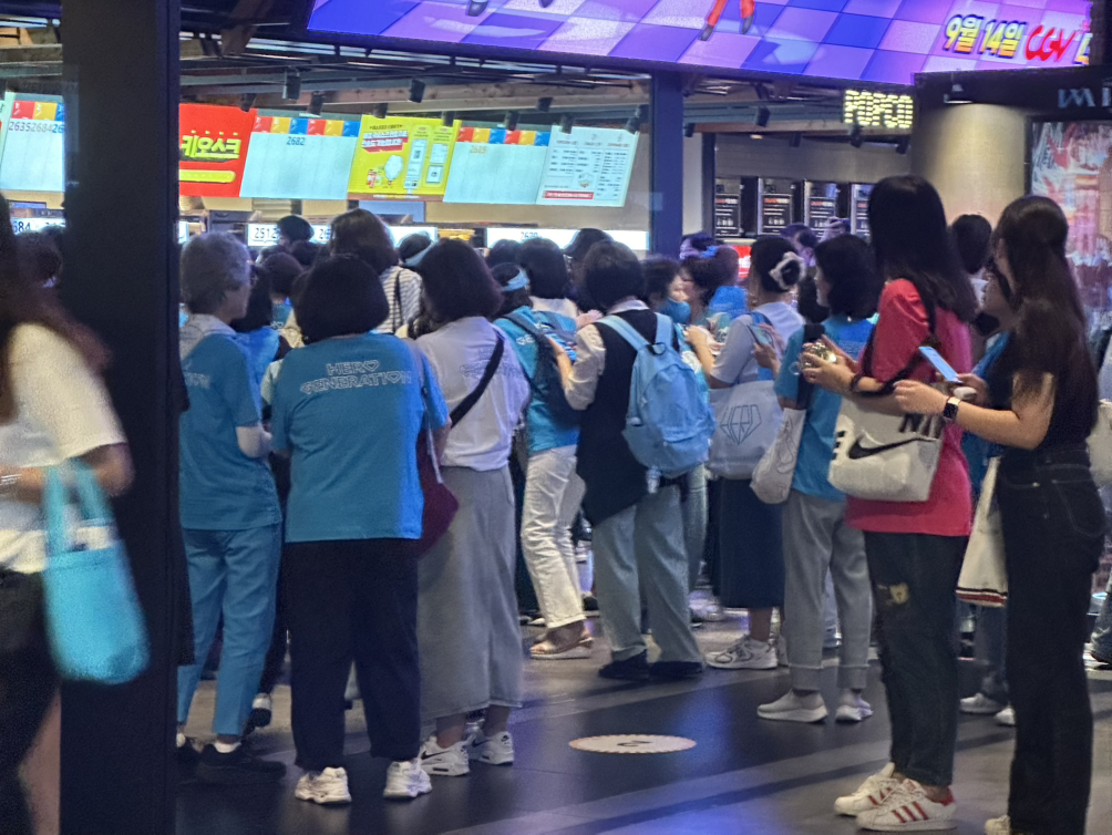 셀 수 없이 많은 인파에 정말 발 디딜 틈 없이 '혼잡' 했고, 수많은 키오스크에서 '포토카드'가 출력되느라 지류티켓을 발급받기까지 10여분을 기다려야 했기에 당혹스러웠지만, 나도 영웅시대 분들처럼 가수 아이유(IU)의 콘서트 실황 영화였던 <아이유 콘서트 : 더 골든아워>를 같은 극장에서 보았던 적이 있기에 이해할 수 있는 즐거운 불편이었다. 오히려 가정에서 어머니와 할머니라고 불릴 중노년층의 분들이 이렇게 주말 저녁에 나와 좋아하는 연예인을 위한 활동을 한다는 것이 보기 좋았다. 그리고 나는 이 모습을 보면서 자연스레 한 가지 생각을 떠올릴 수밖에 없었다.