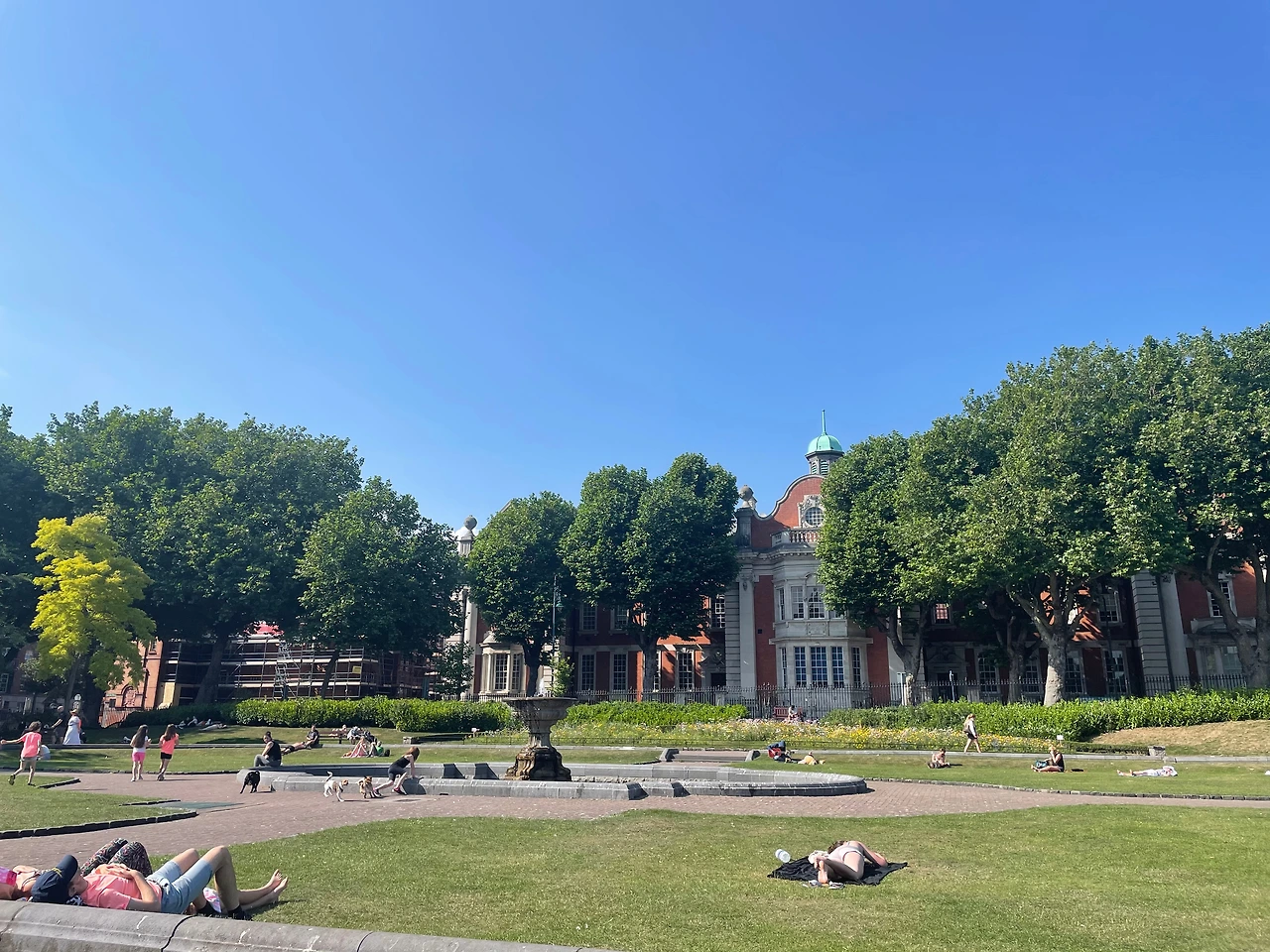 날씨에 따라 조금 다르기는 하지만 대체로 공원에는 반려견과 산책하는 사람들, 책을 읽는 사람들, 뛰고 있는 사람들, 담소를 나누는 사람들, 축구를 하는 사람들, 누워 있는 사람들, 아이와 함께 나온 가족들이 있다.