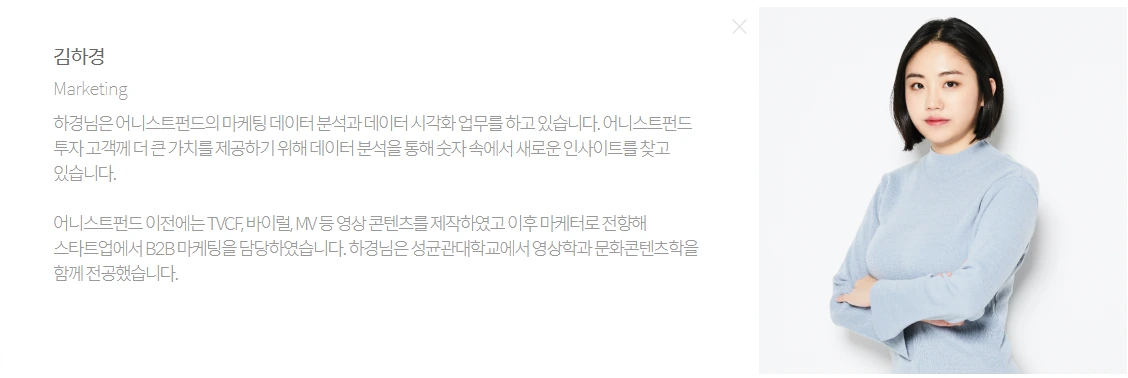 여하튼 지금 본인은 국내의 한 핀테크 업계에서 마케팅을 담당하고 있고, 회사에서 소개해주는 나는 다음과 같다.