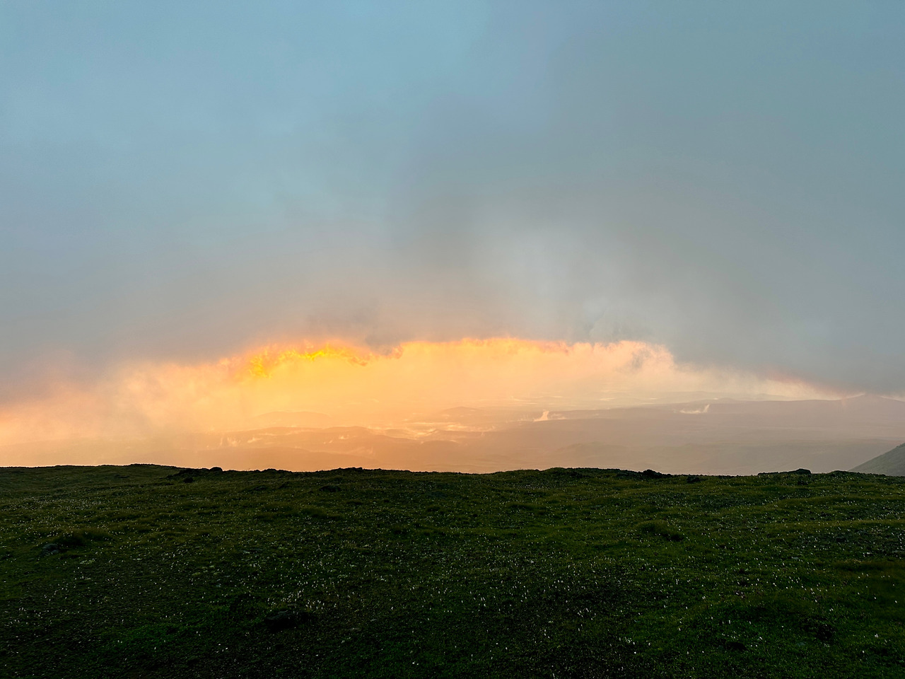 온갖 야생화들이 카펫을 이루며 지상을 수놓고 있어서 발걸음을 조심해야 했다. 사실상 조심은 했지만 나도 모르게 짓밟고 지나온 꽃들을 보면서 그곳에 미안함과 안쓰러움을 남겨놓을 수밖에 없었다. 그렇게 시간 가는 줄 모르며 야생화 천국을 누비는 사이 일행들의 탄성소리가 들렸다. 고개를 들어 보니 구름 사이로 아침햇살이 찬란히 비쳐 나오고 있는 게 아닌가?