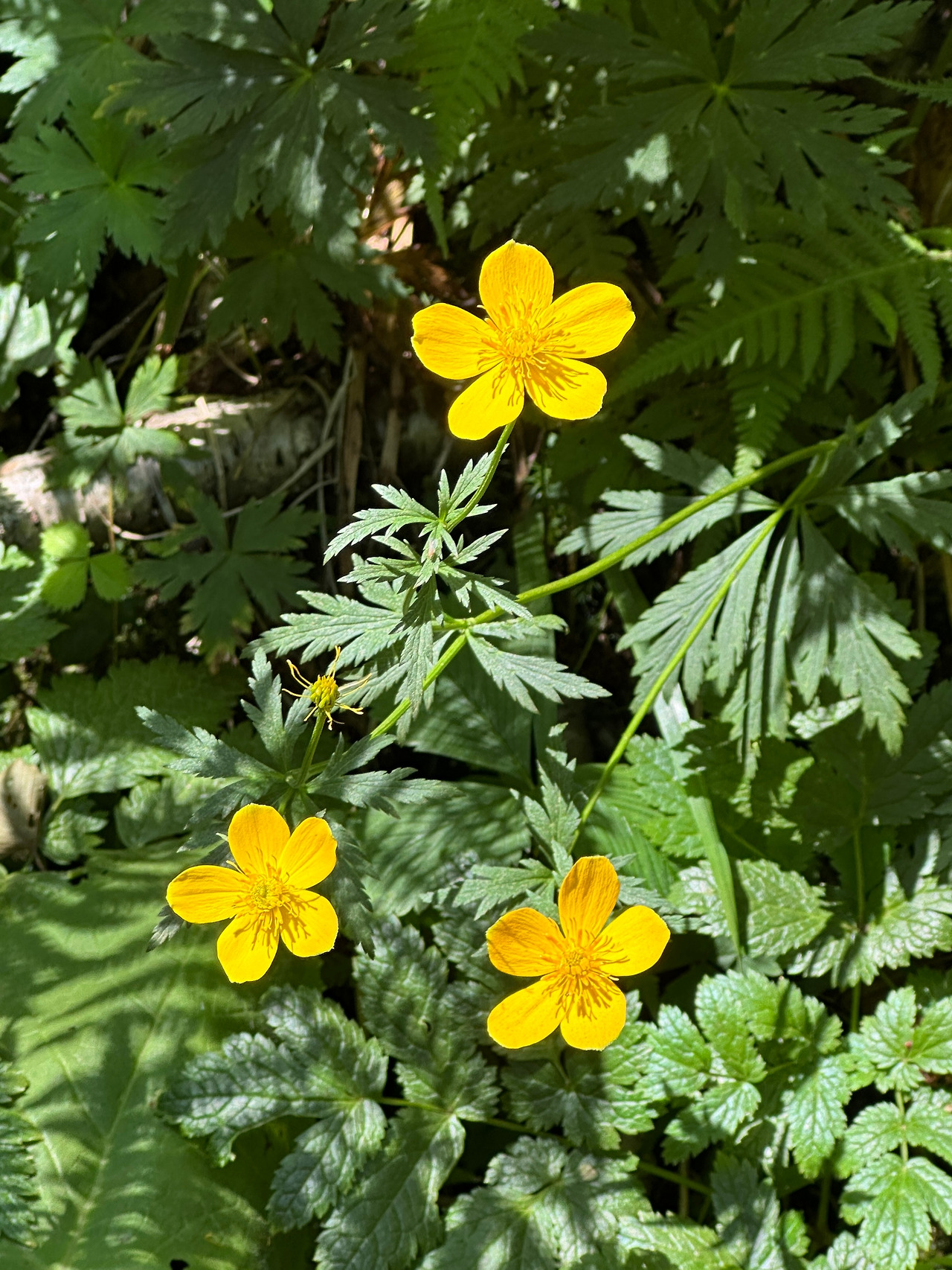 데크길에는 눈개승마 꽃이 많이 눈에 띄었다. 눈개승마 꽃타래는 누런 모습과 연녹색 모습이 함께 관찰되었다. 동행하신 야생화 선배님의 설명에 따르면, 수정이 이루어진 후 눈개승마 수꽃은 누렇게 변해서 떨어져 버리고 암꽃은 더 오래 남아서 연녹색 열매들을 살찌운다고 한다. 은퇴할 시간이 몇 년 남지 않은 "수컷"으로서 씁쓸한 기분이 들었다. 나도 모르게 우울 모드로 빠져들려는 순간, 진노랑 금매화 무리가 햇볕을 받아 더 샛노란 모습으로 나를 맞이했다. 참 고마웠다. 보기만 해도 기분을 고조시키는 색감이다. 바로 옆에는 신비스러운 파랑의 하늘매발톱이 또 내 시선을 사로잡았다. 눈개승마 수꽃이 끌어내렸던 내 기분은 순식간에 고공행진을 하고 있었다.