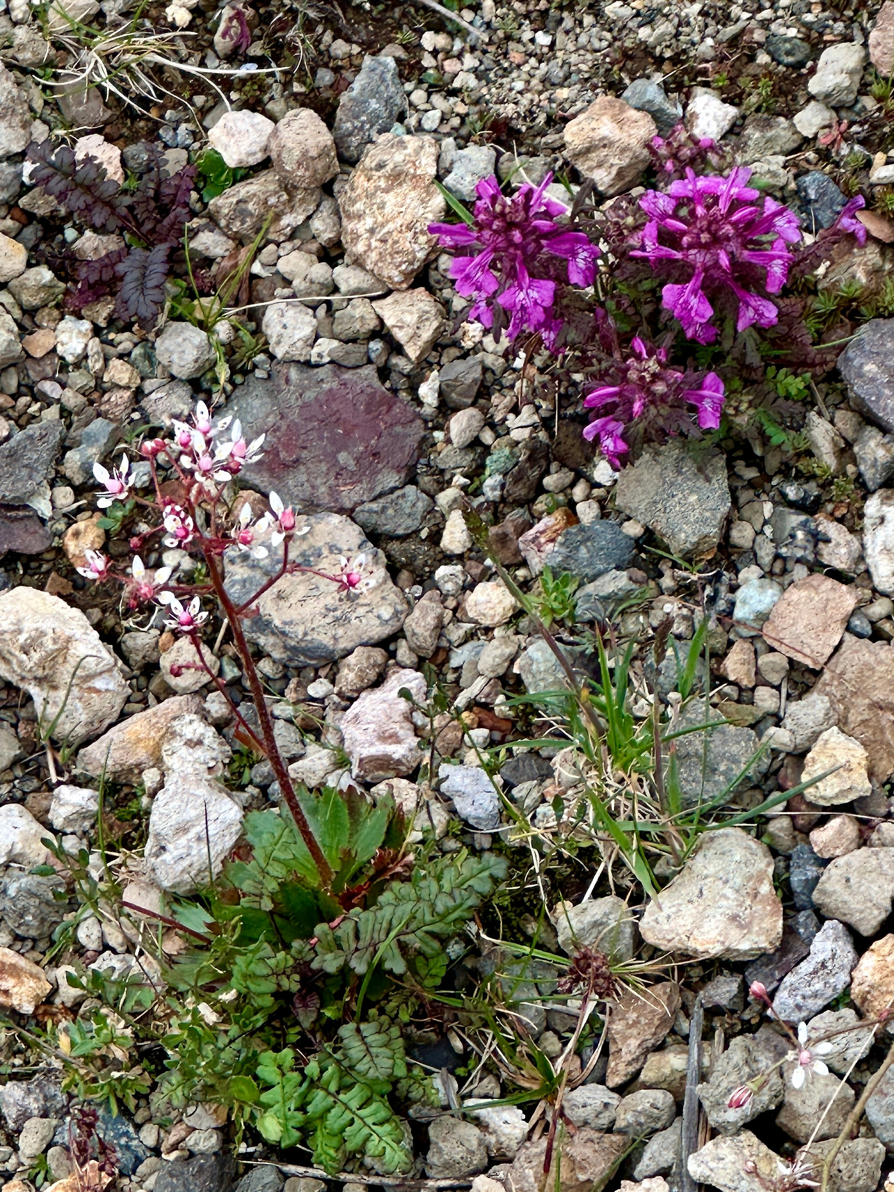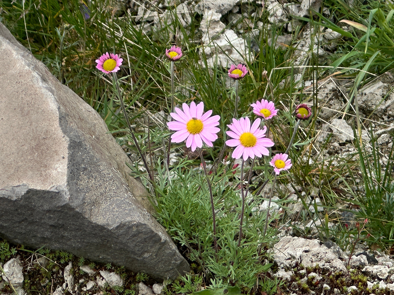 두메분취와 산각시취의 모습도 많이 눈에 띄었다. 완전히 개화하기 전 단계에서 꽃봉오리만으로 둘을 구분하는 건 쉽지 않았다. 작은 바윗돌 아래에는 톱바위취가 만개해서 전성기를 구가하고 있었다. 설악의 참바위취와 아주 흡사한데 자세히 보면 잎의 가장자리가 톱날 모양이라서 구분이 된다. 천문봉에서 많이 보았던 씨범꼬리와 나도개미자리도 멋진 모습으로 자기 자리를 지키고 있었다. 작고 연약해 보이는 나도개미자리는 바위구절초랑 구름범의귀에게 자신의 한 켠을 내어주고 있었다. 그 착한 마음으로 함께 어울리는 모습 때문에 더욱 아름다워 보였다.
