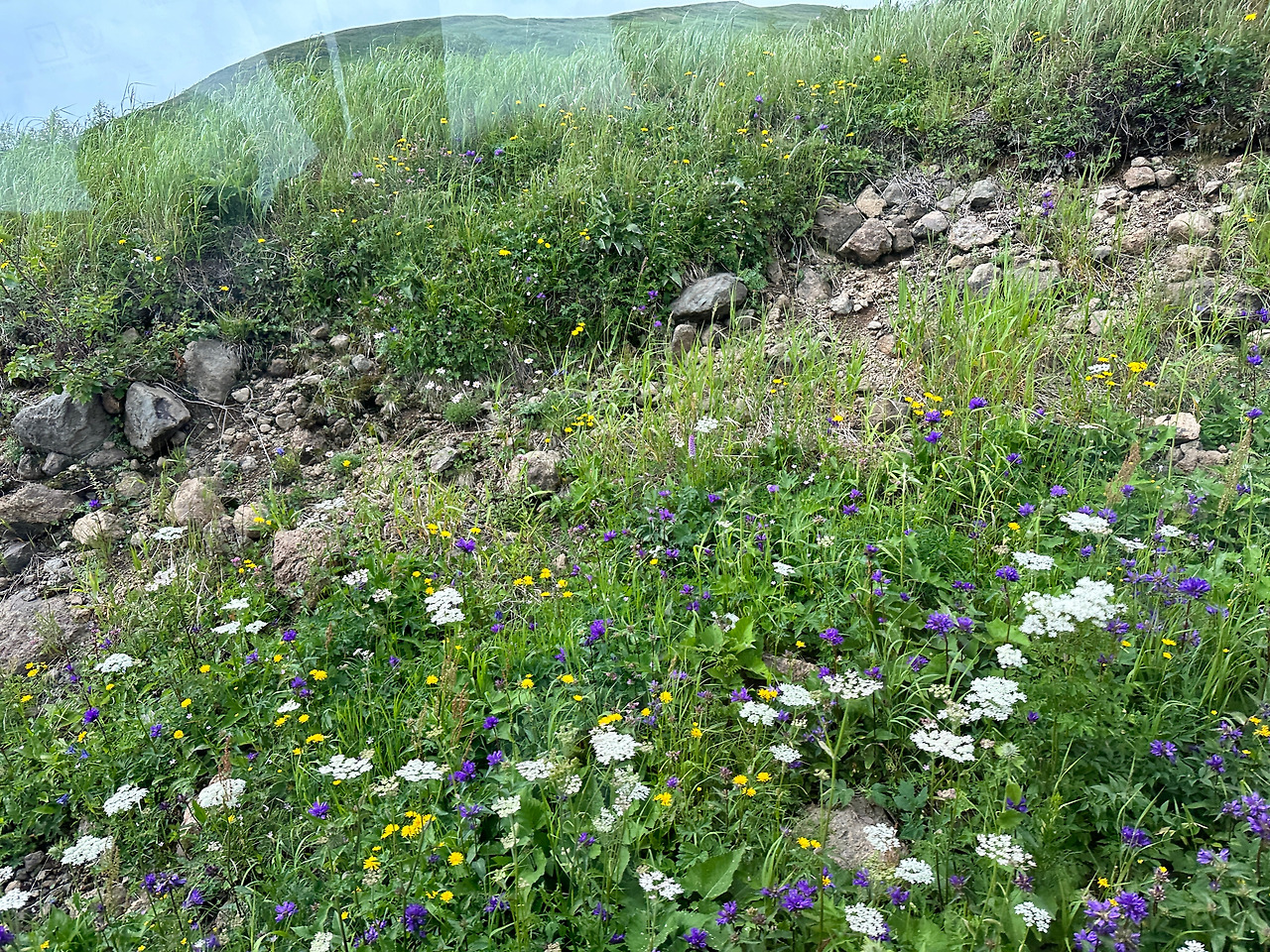 오늘은 탐사 넷째 날, 백두산 서파에 오르는 날이다. 두 번째 날에 이미 천지를 맘껏 즐겼지만 서파에서 보는 천지의 모습은 어떨까 기대가 크다. 사실, 서파의 야생화는 북파와 어떻게 다를까가 더 큰 관심사다. 셔틀버스를 타고 백두산 서파로 오르는 길은 북파 쪽 보다 완만했고, 도로변에 형형색색의 야생화들이 도열해서 우리를 반겼다. 그중 가장 눈에 들어온 건 자주꽃방망이였다. 한국에서는 희귀종으로 여겨지는 꽃이 이곳에는 마치 카펫처럼 깔려 있었다. 승용차였다면 당장 차를 멈추고 그들에게 달려갔을 텐데, 셔틀버스를 이용해야 하는 백두산 오름길에서는 그게 가능하지 않다.