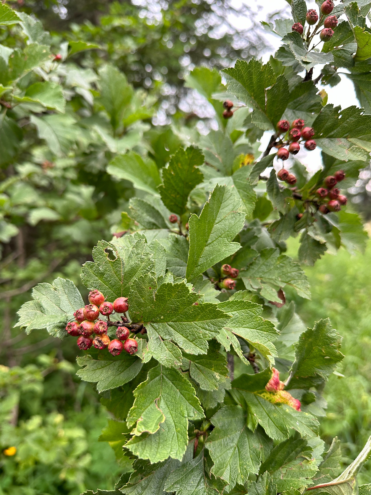 이어서 분홍바늘꽃과 키 꺽다리 수리취도 몇 개체 눈에 띄었고 말나리와 물매화도 여기저기서 자신을 드러내며 우리에게 손짓을 했다. 양치류 군락도 시선을 끌었는데 후에 확인해 보니 음양고비라고 했다. 양치류는 종류가 참 많을 뿐만 아니라 구분하기가 너무 어려워서 우리들 대부분은 그저 양치류라고 부르며 만족해한다. 초원은 가끔 작은 나무들에게도 공간을 내어주고 있었다. 그중 내 눈에 띈 것은 야광나무와 아광나무였다. 야광나무는 한국의 산지에 많이 서식하는 사과나무속 식물이지만, 이름이 한 획 차이인 아광나무는 산사나무속 식물로 모양이 서로 많이 달랐다. 아광나무의 잎과 열매는 산사나무와 너무 유사해서 처음에 산사나무로 동정했던 게 결코 이상해 보이지 않았다.