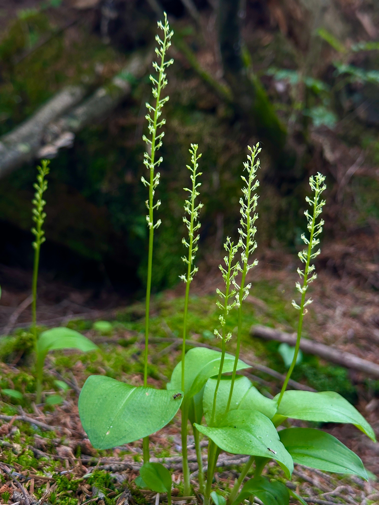 공원입구에서부터 귀하지만 익숙한 꽃들이 우리를 반겼다. 자주꽃방망이가 계속 눈에 들어왔고, 함백산에서 보았던 멍덕딸기, (명천송이풀로도 불리는) 뭔가 흐트러진 모습의 송이풀, 딱 한송이 눈에 띈 참대극 등이 그것이었다. 사진 찍느라 뒤쳐진 우리를 기다리고 있던 야생화 탐사 안내자는 그늘진 바위 쪽을 가리키며 의기양양한 표정을 지었다. 뭔가 중요한 것을 보여주겠다는 의도를 쉽게 읽을 수 있었다. 이끼와 나무뿌리로 덮인 바위 옆에 난초 군락이 눈에 띄었다. 이삭단엽란이라고 했다. 나는 펜스를 가볍게 넘어 단숨에 그쪽으로 뛰어들었다. 줄기 아래쪽에 넓은 타원형 잎을 딱 한 장씩만 달고 있는 난초 여섯 개체가 다정하면서도 씩씩한 자태를 뽐내고 있었다. 나는 옆구리를 땅에 대고 누워서 최대한 멋지게 (그리고 기다리는 일행을 위해 가능한 한 빨리) 사진에 담고 데크로 물러섰다.