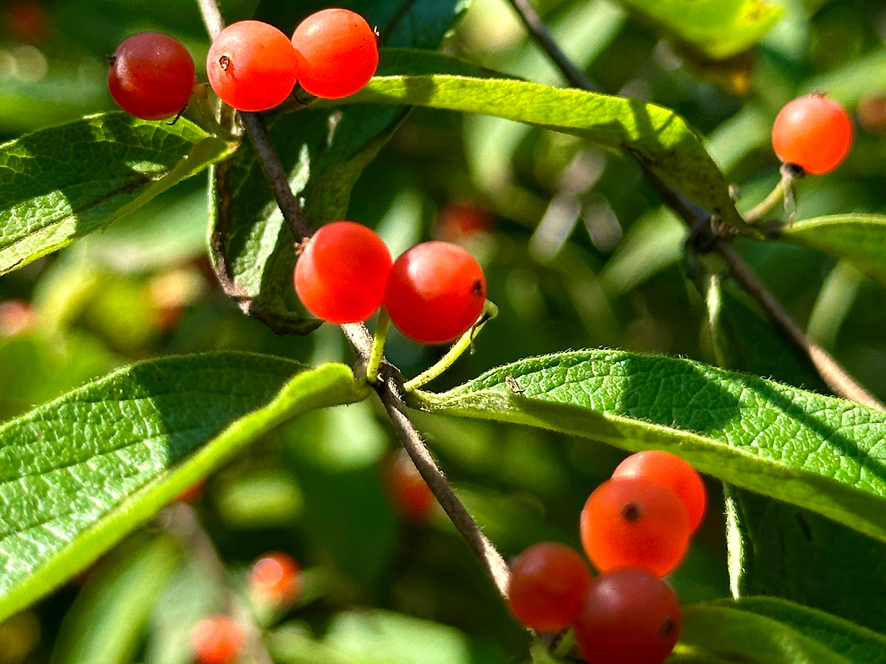 털동자꽃 서식지 뒤쪽에는 이도백하 숙소 앞 미인송공원에서 보았던 물앵도나무가 여러 그루 보였다. 열매가 꽃 보다 매력적인 식물 중 하나일 것이다. 앵도의 종류라고 생각해서 한 알 따서 입에 넣어 봤는데 쓴맛이 너무 강해서 저녁식사를 마칠 때가 그 쓴맛이 가시지 않았다. 일반 앵두 같은 맛이 전혀 아니어서 혹시 홍괴불나무가 아닐까 추정을 했는데 귀국 후 전문가의 의견을 들어 물앵도나무로 결론을 지었다.