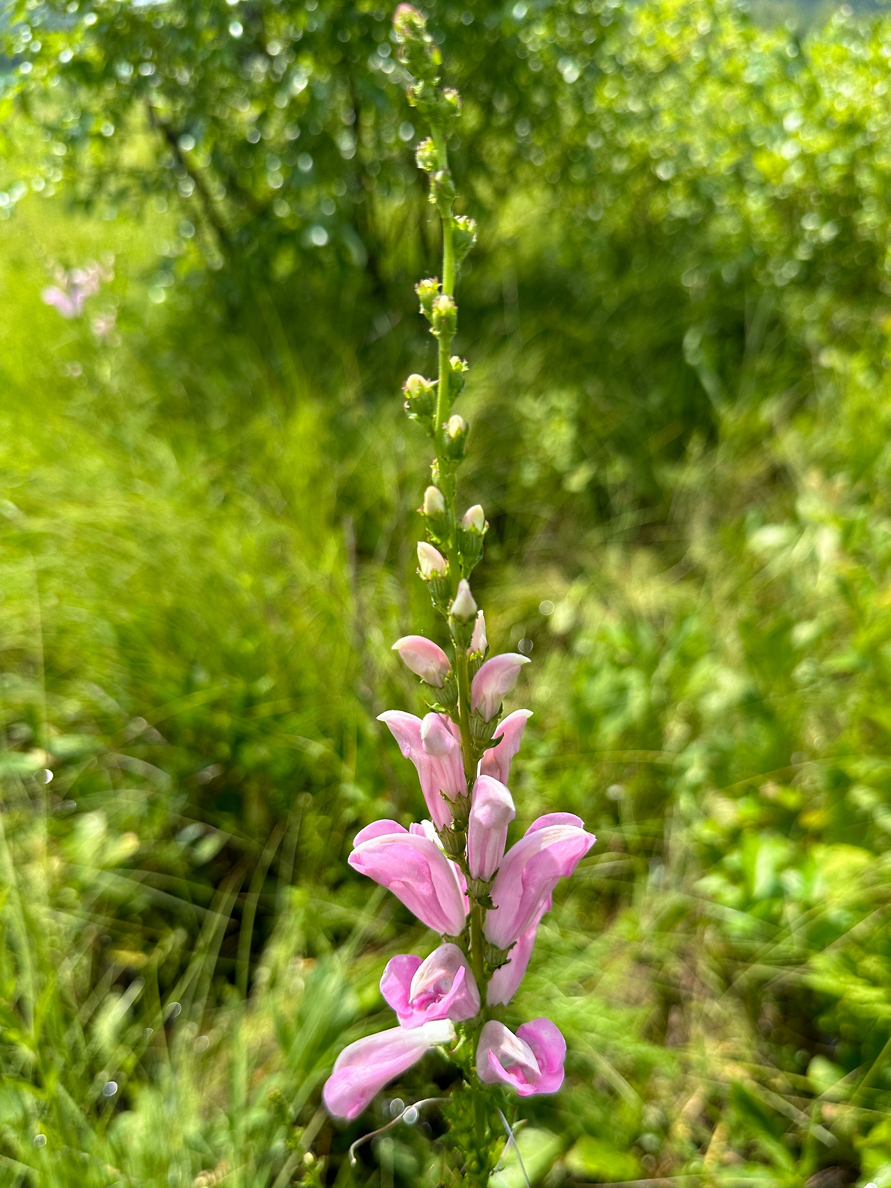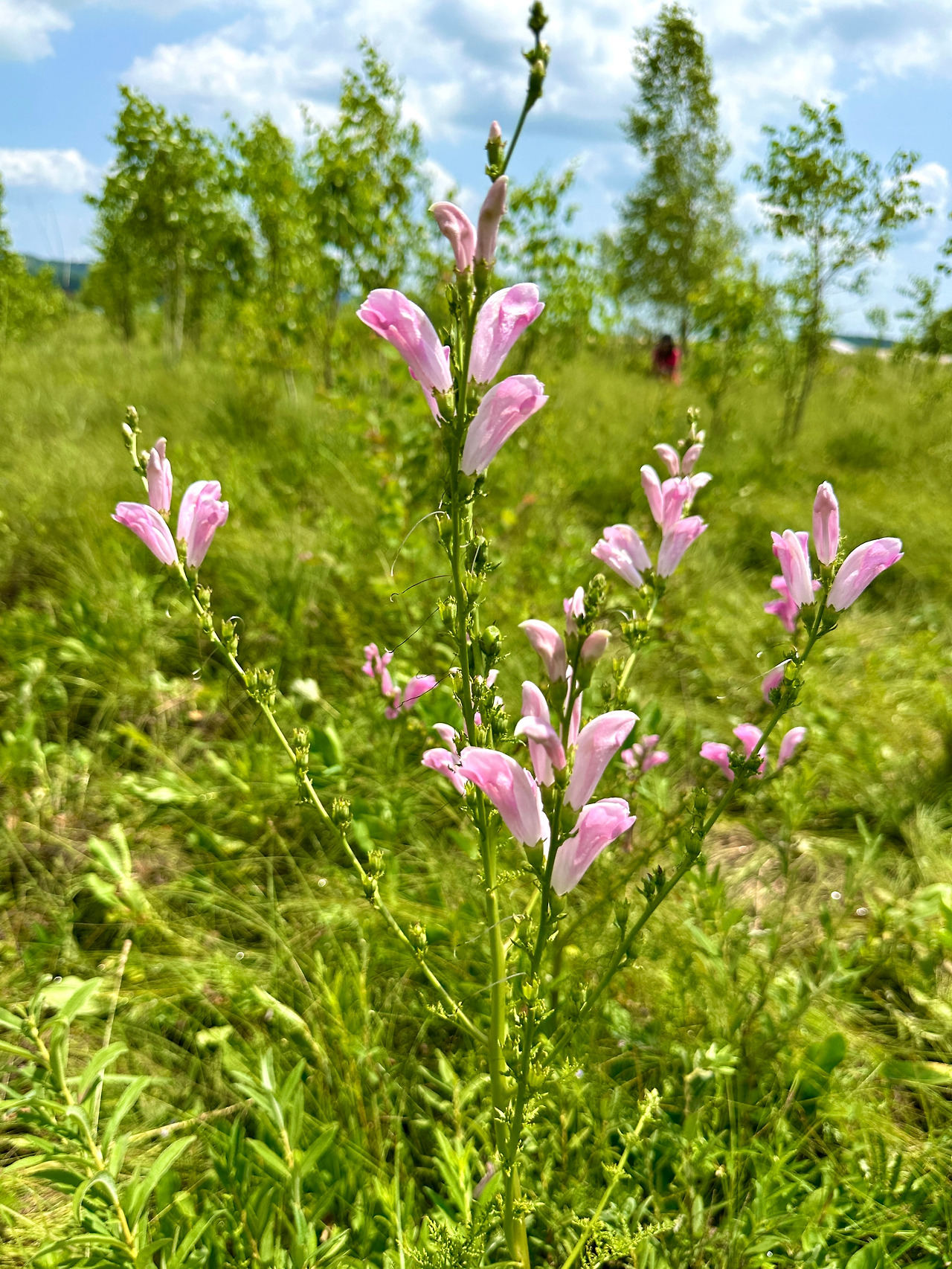 이쪽 습지에서 삼쥐손이만큼 우리의 눈길을 끌어당기며 그 존재감을 과시한 것은 큰송이풀이었다. 낱꽃과 잎의 모양과 색은 일반 송이풀과 유사했지만 전초의 모습은 완전히 달랐다. 키가 무척 커서 어떤 개체는 1미터를 훌쩍 넘었고 꽃대가 줄기에서 여러 갈래로 갈라져 나와 꽃대 아래부터 위쪽으로 계속 꽃을 피워 올리는 모습이 개화한 복사나무 모양을 하고 있었다. 부드러운 분홍 꽃색의 매력에 이끌려서 눈에 보이는 개체마다 사진에 담고 보니 나중에 좋은 사진을 선별하는데 큰 어려움을 겪었다. 모두가 다 멋지고 아름다운데 어떤 사진은 버리고 어떤 사진은 간직할 것인가? 꽃친구 한 분은 선택장애 때문에 같은 종류의 꽃을 많이 찍지 않는다고 했는데 그 말에 오롯이 공감하는 계기가 되었다.