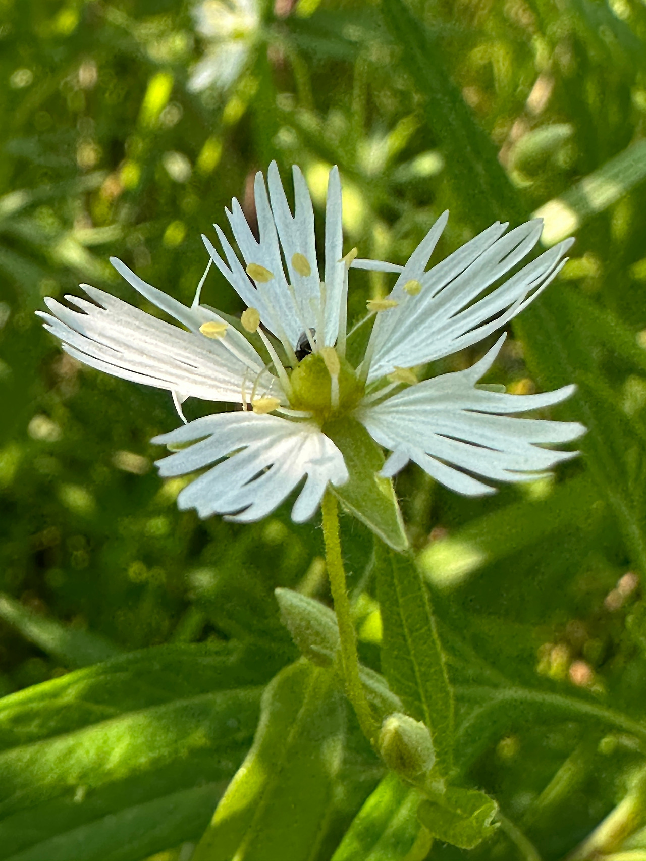 별꽃 같이 생겼는데 꽃잎이 가늘고 길며 10장이나 되는 꽃이 있어서 일단 사진에 담았는데 후에 알아보니 실별꽃이라고 했다. 별꽃, 개별꽃, 큰개별꽃, 쇠별꽃 등 별꽃에는 종류가 참 많다는 걸 알고 있었지만 실별꽃도 있을 줄이야... 안내자가 습지 중간쯤에 관목처럼 보이는 작은 나무를 가리키며 아주 중요한 식물이라고 했다. 잎이 햇볕을 받아 유난히 반짝이고 있었다. 이름은 반짝버들이었다. 참 그럴듯한 이름이었지만 햇볕에 반짝이지 않는 나뭇잎이 어디 있을까? 자세히 보니 잎 뒷면이 더 흰색을 띠어서 햇볕에 더 반짝이는 건 분명했다.