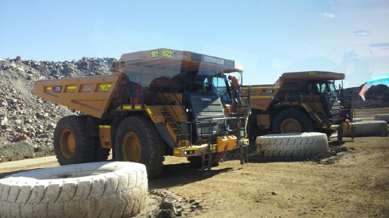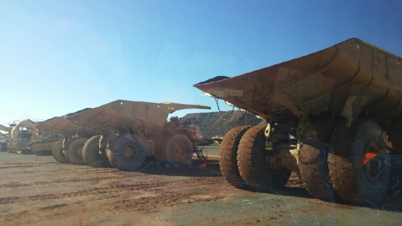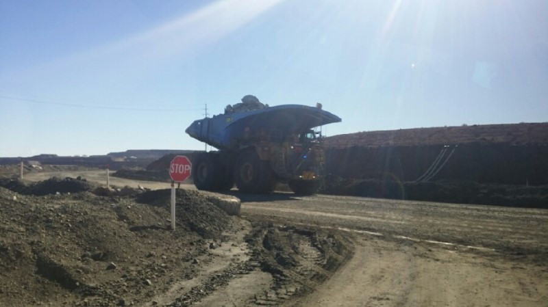보안검색대를 통과하고 얼마를 더 가자 광산 덤프트럭이 하나 둘 보이기 시작했다. 덤프트럭은 옆에 지나가는 토요타 트럭이 장난감으로 보일 정도로 컸다.