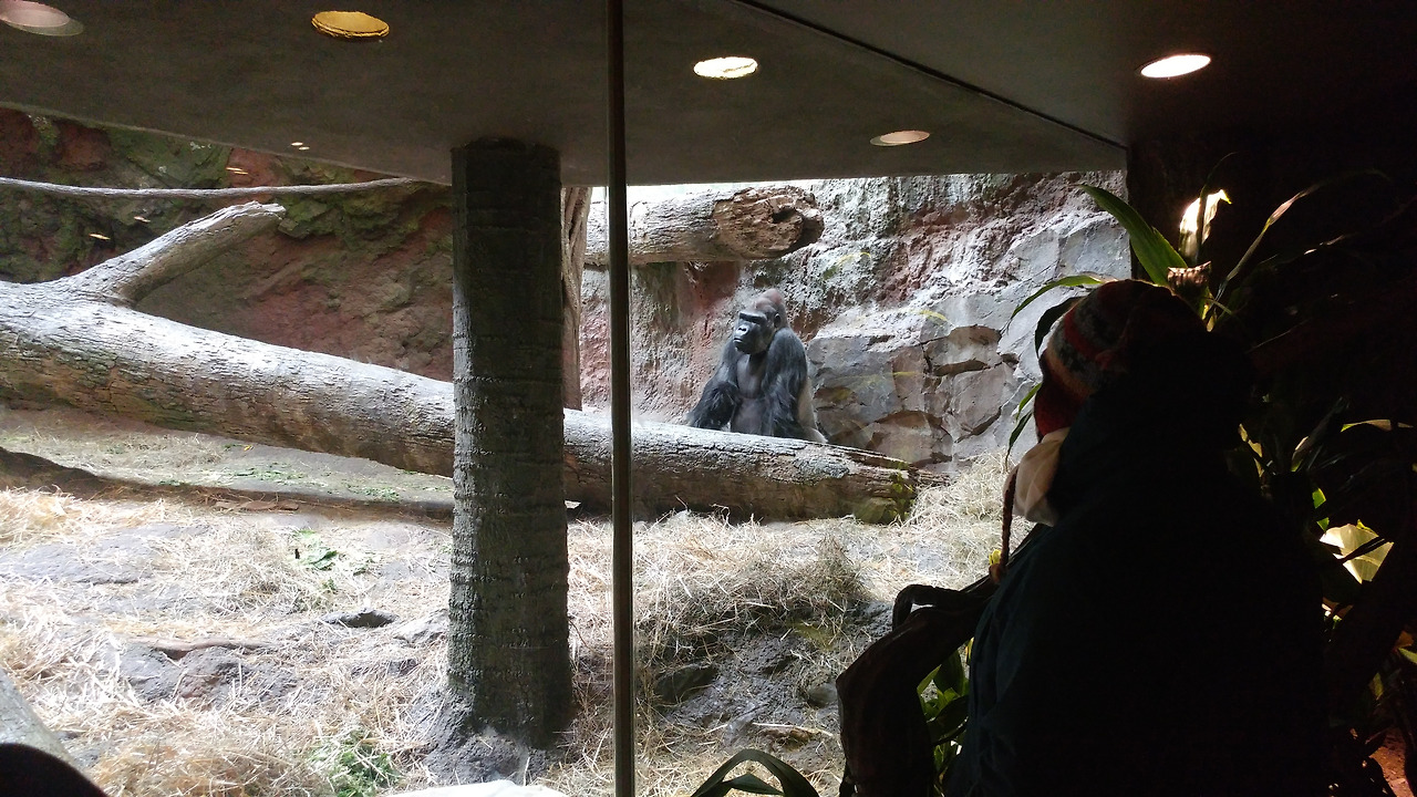 나는 고릴라를 보기 위해 들어갔다. 실내 강화유리 안 우리에선 고릴라들이 살고 있었는데, 새끼들은 서로 장난친다고 바빴고, 엄마고릴라는 나무 위에서 점심식사 중이었으며(입에서 샌 풀이 바닥으로 비오듯 떨어졌다), 아빠고릴라는 구석에서 조용히 웅크리고 있었다. 난 아빠고릴라가 가장이라는 중압감과 직장생활의 스트레스에 시달리고 있진 않을까 생각했다.