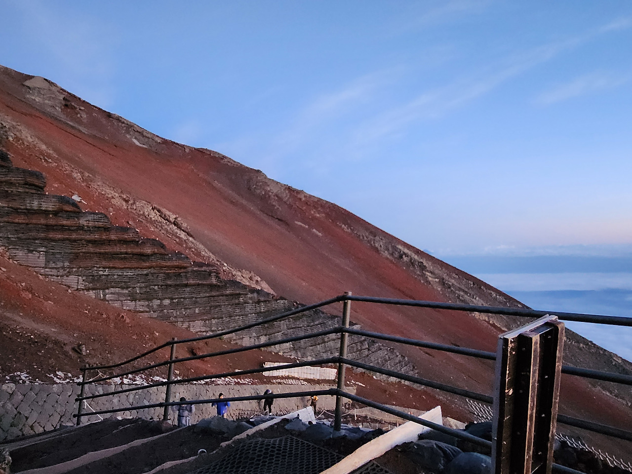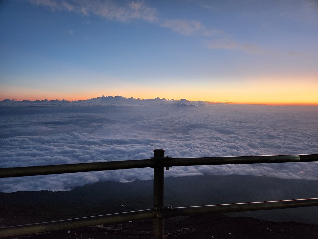 가이드 말씀이 이렇게 좋은 날씨에 일출을 본다는 것은 3대가 덕을 쌓아야 볼 수 있는 풍경이라고 말하였다. 후지산의 워낙 변덕스러운 날씨 때문에 언제나 일출을 덮어버릴 수 있다는 설명이다. 이제 일출도 보았으니 하산하는 것이 좋겠다고 의견이 모아졌고, 내심 후유 살았다는 안도감이 밀려왔다.