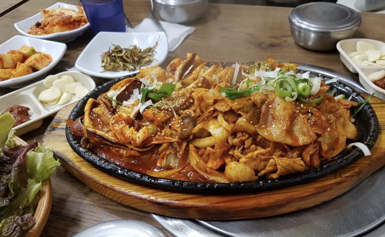 이 집 최고의 인기 메뉴는 제육볶음. 학생들도, 공사장 인부도, 아저씨도 제육볶음을 시켜 먹는다. 식당 아주머니는 지글대는 제육볶음을 들고 이리저리 뛰어다닌다. 우리의 신경은 온통 아주머니를 향해 있다. 시끌벅적한 대화 중에도 문득 등장하는 침묵이 말해준다. ‘빨리 나왔으면 좋겠다.’ 드디어 커다란 은쟁반을 든 아주머니가 우리 쪽으로 온다. 무뚝뚝하기 짝이 없다. “마스크 좀 치워줘요”, “(제육볶음) 놓게 반찬 좀 옆으로 밀어요.” 하지만 우린 기분 나쁠 틈도 없다. 학생도, 인부도, 아저씨도 그저 제육볶음 먹을 생각에 신나 냉큼 상을 치운다. 지금 이 순간 우리는 그저 이 집의 제육볶음이 고픈 손님일 뿐이니까.