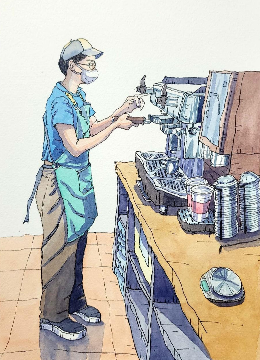 집 앞 입구에 작은 프랜차이즈 커피전문점이 생긴 후로 아침 출근할 때마다 꼭 들러서 커피를 사들고 나온다. 그곳은 평일에는 아이들 유치원을 보낸 엄마들이 모여서 이런저런 수다를 떠느라 만석이고, 오전 시간이 아주 분주해 보인다. 커피전문점의 아르바이트 청년과 젊은 여사장은 숙달된 빠른 손놀림으로 손님을 응대한다. 두 사람은 무엇을 주문을 하든 어디에 뭐가 있는지 머리보다 손이 더 빨리 움직이는 것 같았다. 단체 주문이라도 받으면 손발이 척척 맞아서 환상의 콤비 같다.