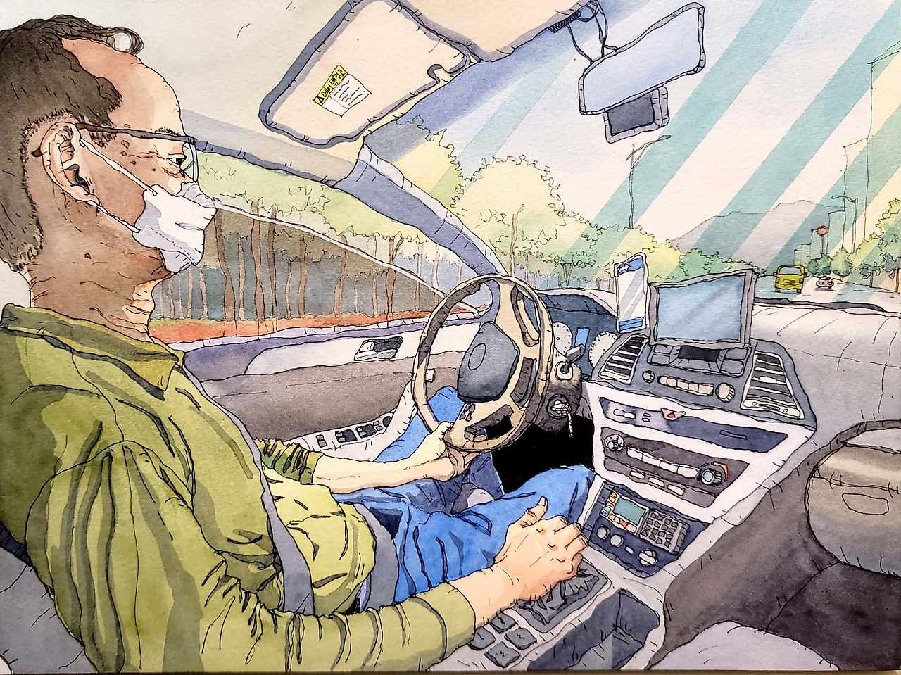 택시 하시면서 힘든 점은 없는지 여쭤봤다. 콜이 와서 현장에 나갔는데 손님이 보이지 않아 한참 기다리는 경우가 종종 있다고 하셨다. 미리 나갈 채비도 하지 않은 채 택시 먼저 부르는 사람도 있나 보다. 택시야말로 시간 싸움인데 그럴 때 제일 힘들다고 하셨다. 그는 젊은 시절 대형 차량을 운행하고 은퇴 후 택시기사를 하고 계셨다. 그래서인지 편안하고 부드럽게 운전하셨다. 10분 정도 지나 목적지에 도착해서 건널목 앞에 내렸다. 반대편 물금역 택시 승강장 앞에는 역에서 나오는 손님들을 태우기 위해 대기 중인 또 다른 택시기사님들이 담소를 나누면서 스트레칭을 하고 계신다.
