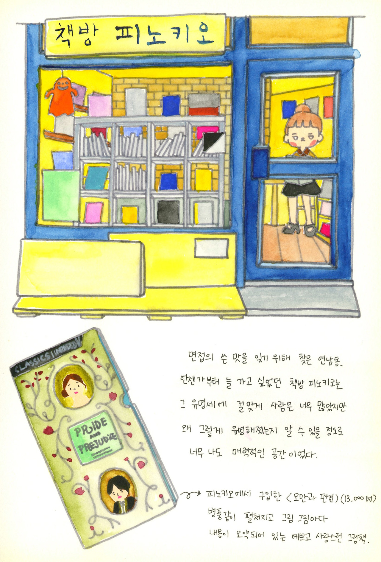가장 먼저 생각난 곳은 연남동이었다. 그중에서도 딱 한 군데, 내 마음을 진정시켜줄 만한 곳이 있었으니 그곳이 바로 <책방 피노키오>. 예쁘고 아기자기한 것들을 좋아하는 데다가, 그림책도 즐겨 모으는 나에게, <책방 피노키오>만큼 나의 감정을 달래줄만한 곳이 없었다.