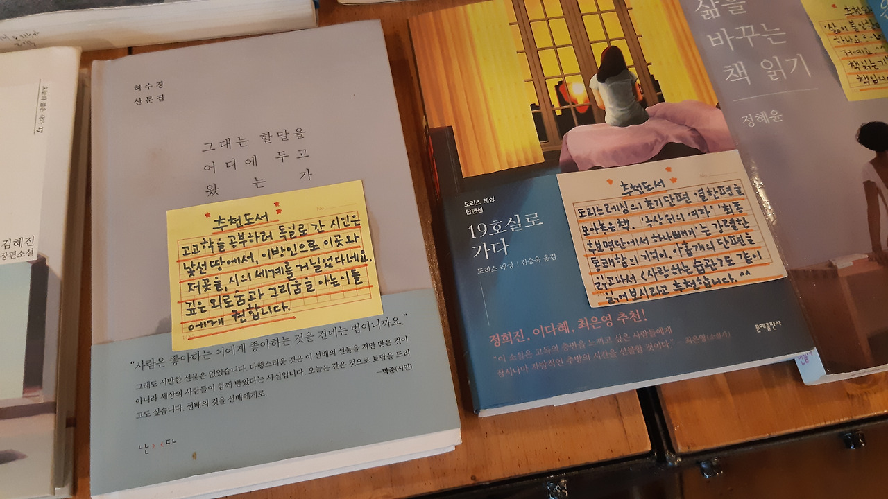 책에 대한 사장님의 애정과, 추천받은 책들도 좋았다.