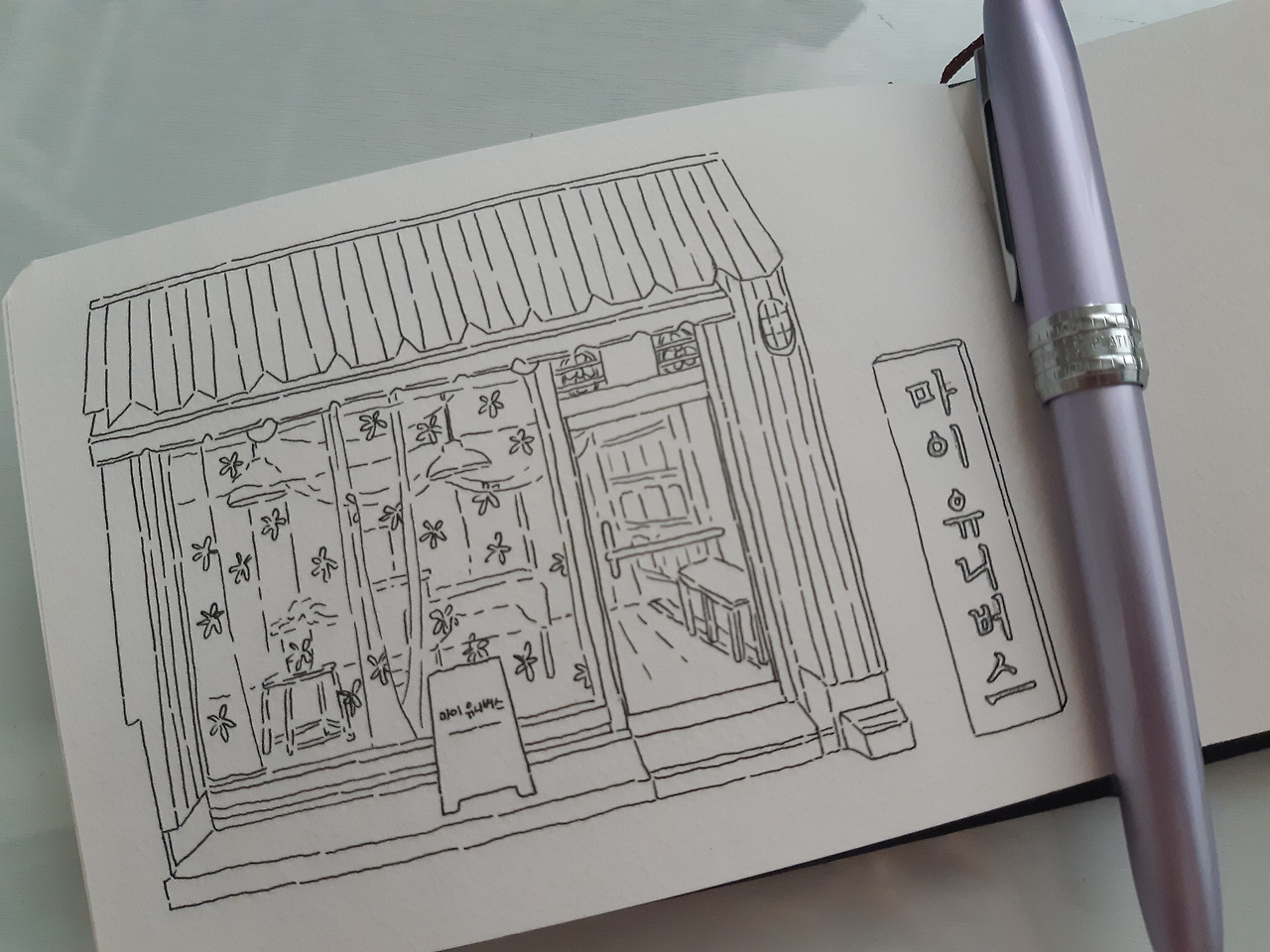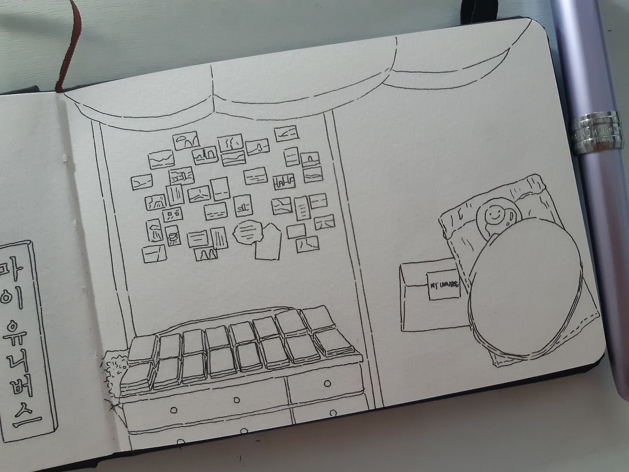 <마이 유니버스>도 기록해보았다. 아기자기한 책방을 그리는 것이 즐거웠다.