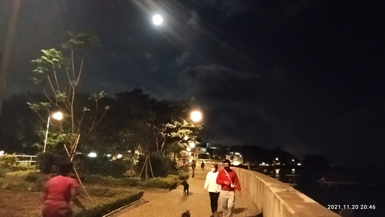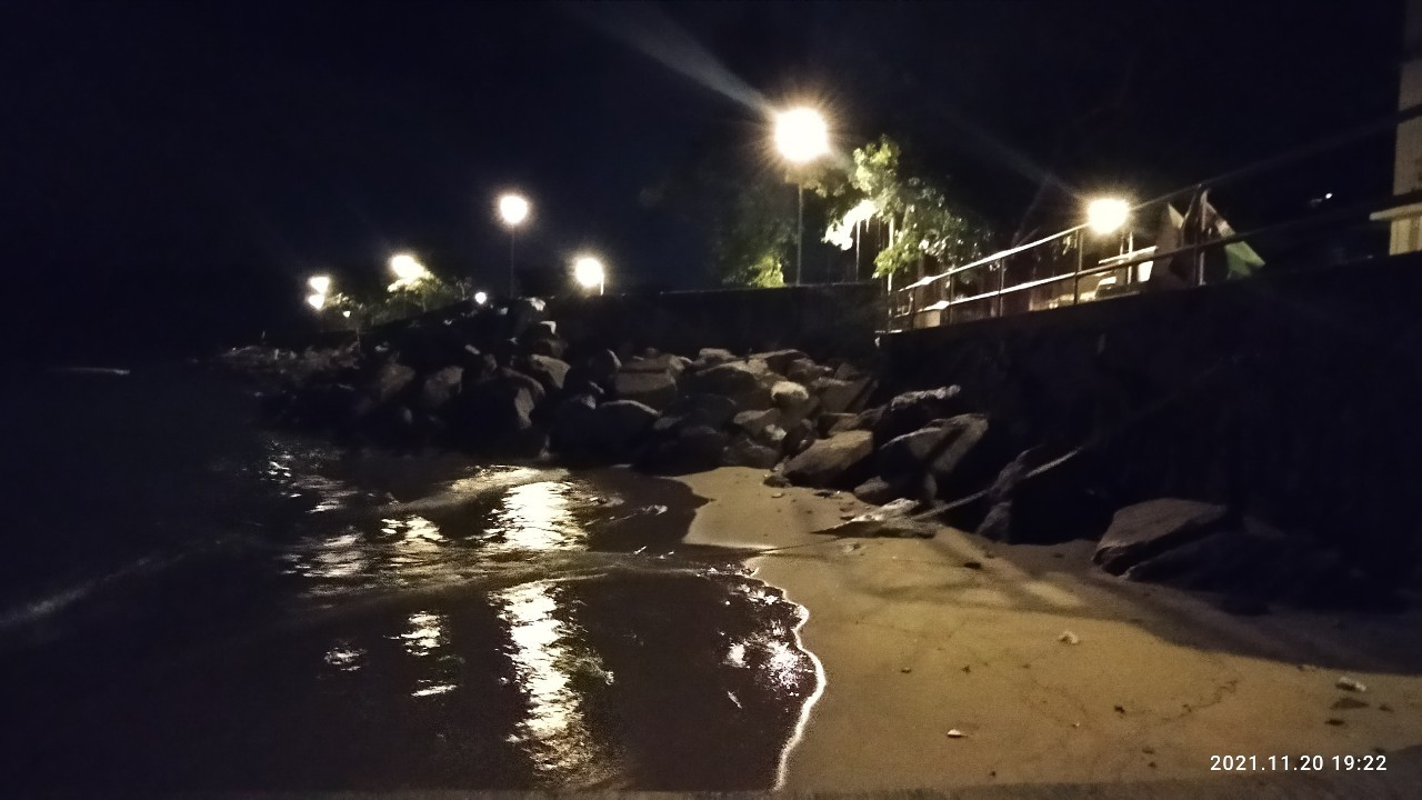 해변에 지나치게 오래 앉아 있다가 엉겁결에 갑자기 넘쳐 오는 큰 파도에 신발을 적셨습니다. 정신이 번쩍 들어 이제는 다시 발걸음을 다른 곳으로 옮깁니다. 달이 아주 예쁘게 떴습니다. 21시 15분에 센트럴 피어로 출발하는 페리를 타기로 했기에 이제 슬슬 선착장으로 다시 돌아가야만 합니다.