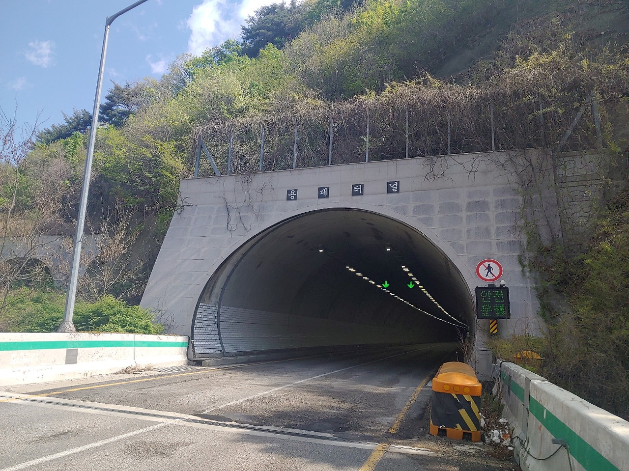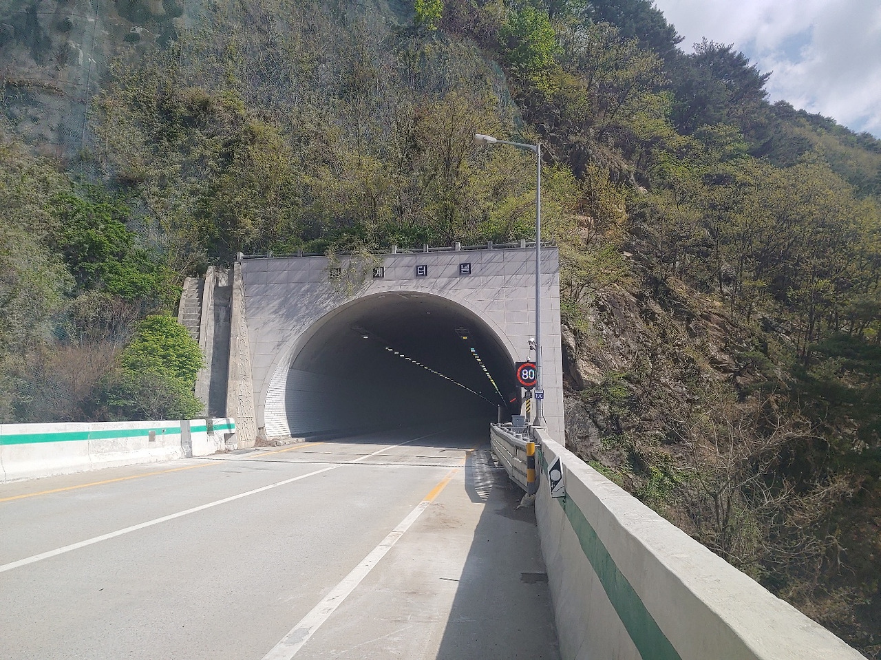 이제 한계터널을 지나니, 곧바로 용대터널이 나옵니다. 터널 오른편에는 멋진 자연풍경이 펼쳐저 있습니다만, 저는 다시 터널로 들어갑니다. 고개를 숙이고 발끝을 보며 여러 생각을 가다듬으면서 전진합니다. 용대 터널은 한계 터널보다 훨씬 짧아 통과하기가 용이합니다. 터널 두 개를 통과하고 나니, 다시 햇볕이 쨍쨍한 대자연입니다. 더욱 힘차게 걸어야죠.