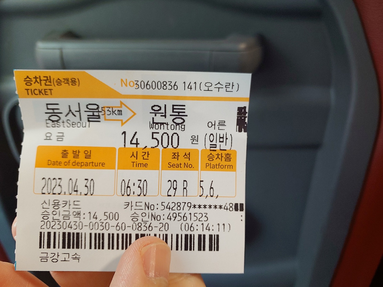 6시 30분에 동서울버스터미널에서 원통으로 가는 첫 차가 출발하기 때문에, 아침에 일찍 일어나서 첫 지하철을 탔습니다. 어제는 비가 많이 내렸는데 오늘은 기온이 다소 쌀쌀하지만 그래도 날씨가 맑아서인지, 아침부터 많은 사람들이 보입니다.