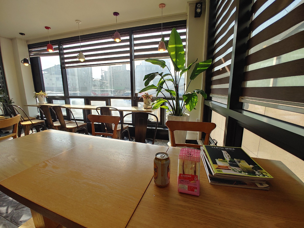 오후 4시 20분, 저는 속초시외버스터미널에 도착했습니다. 아까 미시령에서 걸어내려오면서 단 한 장 남은 오후 5시 버스 티켓을 예약했었기 때문에 더욱 마음이 급했습니다만, 이제는 모든 것을 이룬 셈입니다. 끝없는 성취감이 밀려들어와 매우 기분이 좋았습니다. 터미널 옆의 세븐일레븐에 가서 시간을 때우기로 합니다. 놀랍게도, 2층 공간까지 마련되어 있었습니다. 저는 다시 샌드위치와 클라우드 캔맥주 하나를 사서 올라갑니다. 사람이 거의 없어서 매우 조용했습니다. 거의 제가 독차지한 셈입니다.