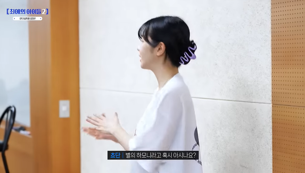 2024년 7월 21일에 업로드된 <자다가 납치당한 아이돌> 편은 QWER 리더 쵸단이 잠옷 바람으로 부산까지 내려가 경성대학교 브리즈온 윈드오케스트라(이하 브리즈온)를 만나는 내용을 담고 있습니다. 무대 뒷편에 위치한 드러머인지라 "보이지 않는 자"라는 별명까지 얻은 쵸단의 단독 컨텐츠라서 유달리 반가웠습니다. 하지만 제가 가장 놀라고 감동했던 순간은, 그녀가 매니저 검은수염과의 전화 통화를 통해 브리즈온과 함께 <별의 하모니>를 연주하기로 결정한 때였습니다.