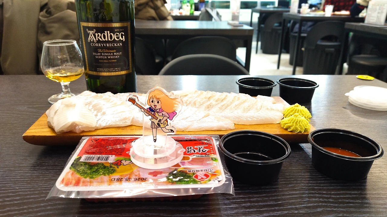 <위안의 시간> 유튜브 채널 주인장은 출장을 간 김에 아드벡 코리브레칸과 회를 함께 하는 영상을 찍었습니다. 이 채널 이외에도 위스키를 다루는 유명 유튜버들은 코리브레칸과 같은 "피트 위스키"에는 회가 잘 어울린다고 설명했습니다. 아드벡 시리즈의 경우 짭조름한 향이 제법 나서, 해산물과 무척이나 마리아주(mariage)가 잘 맞는다고 하더군요. 저같은 위린이라면 그냥 선배가 알려주는 데로 일단 즐긴 다음에 제 갈 길을 가야 하지 않겠습니까?