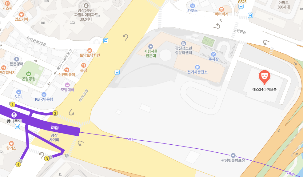 광나루역 2번 출구를 나와 검은 옷의 덩치들을 따라 가니, 예스24라이브홀이 나왔습니다. 근처에 자주 왔는데도 어째서 여기의 존재를 몰랐을까요.