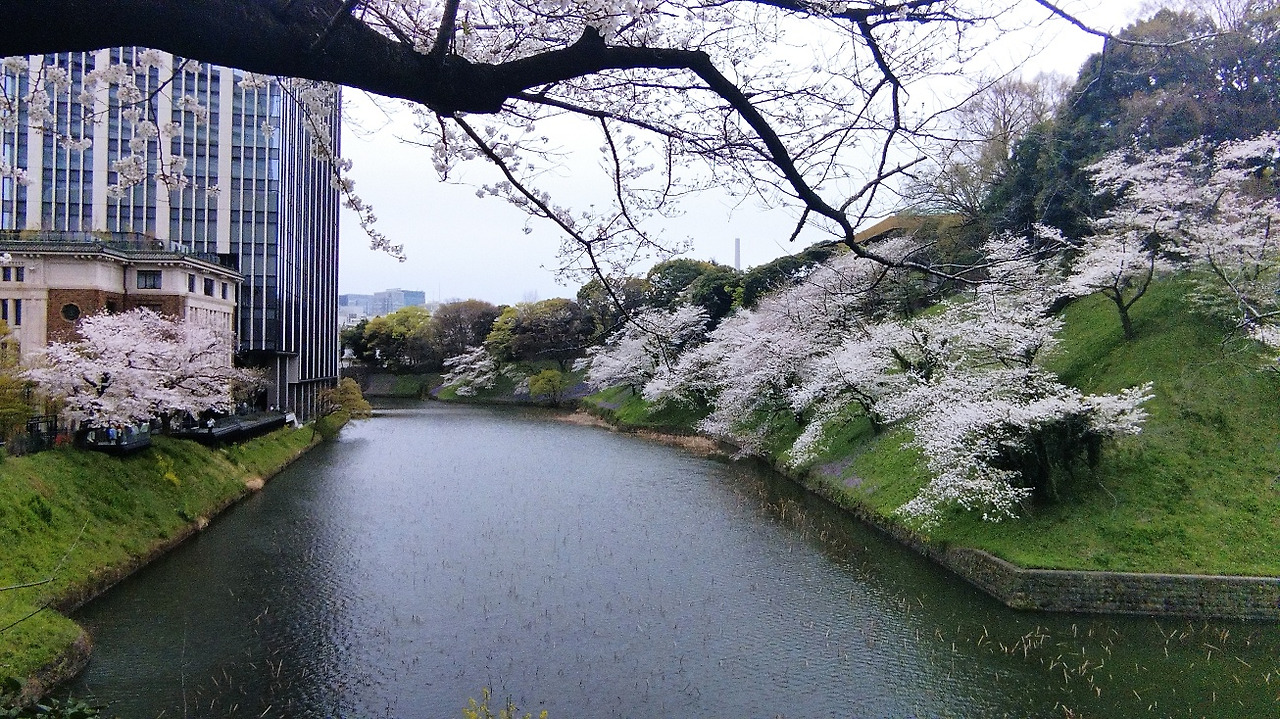 키타노마루 공원을 둘러싼 해자를 중심으로 벚꽃이 끊임없이 펼쳐집니다. 그리고 산책로가 잘 형성되어 있어, 벚꽃나무 따라 걷기에도 좋습니다. 가끔씩 이슬비가 내리기는 했지만, 공기가 깨끗하고 사방이 고요해서 무척이나 마음에 들었습니다.