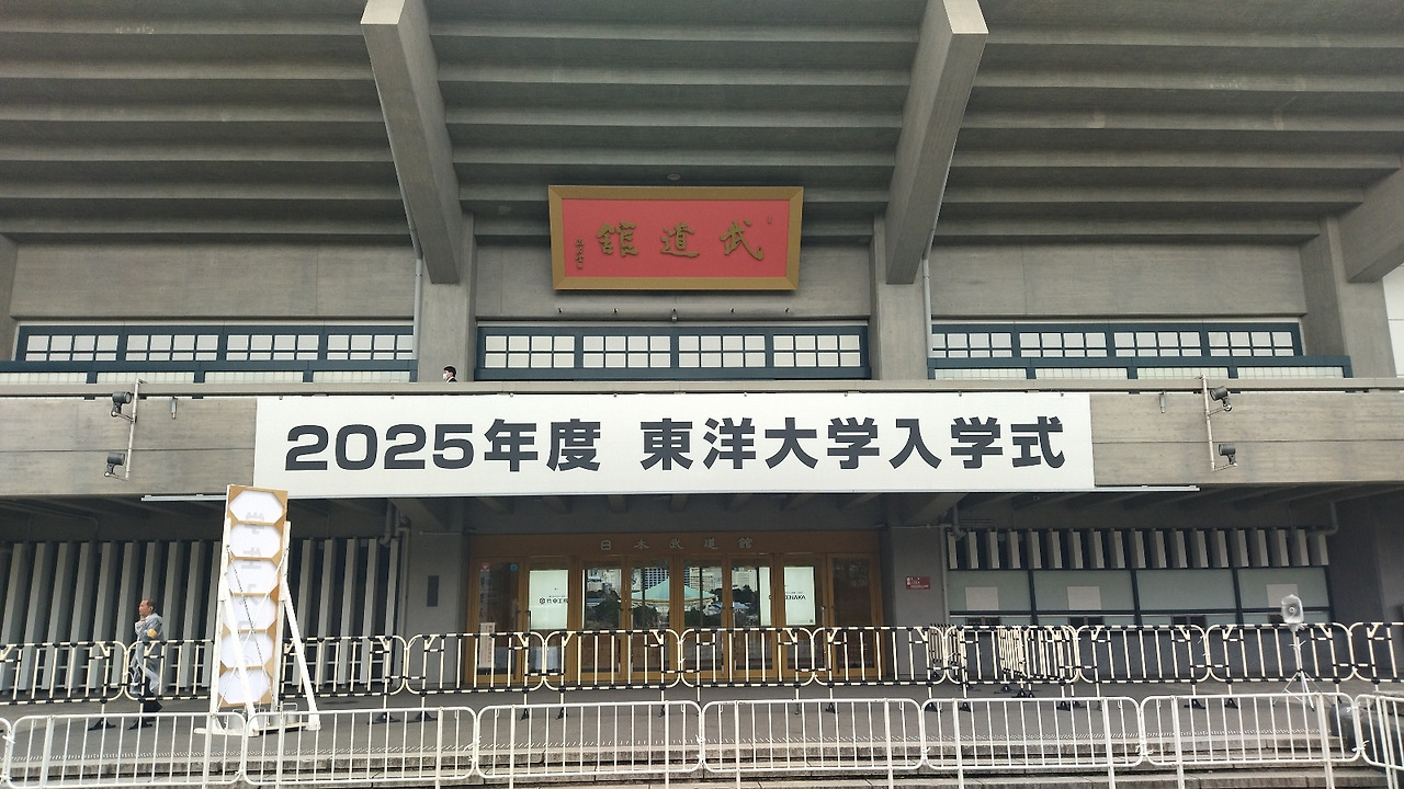 구단시타 역에 내리니 엄청난 인파에 숨이 막혔습니다. '아, 지금은 벚꽃 시즌이니 사람들이 이렇게 몰리는구나!'라고 생각했는데, 그게 아니었습니다. [2025년도 동양대학 입학식]이 무도관에서 있었던 것입니다.