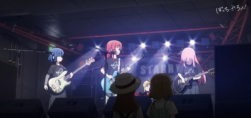 QWER은 데뷔 당시에 일본 여러 애니메이션의 걸밴드 및 아이돌을 참조했습니다. 그 가운데에서 가장 핵심적인 그룹은 <봇치 더 록!>에 나오는 '결속밴드'였죠. 그녀들은 시모키타자와의 조그마한 지하 라이브하우스인 <스태리Starry>를 중심으로 활동했는데요. <스태리>의 실제 장소인 <쉘터>의 경우, 바위게들이 시모키타자와 성지순례를 할 때 반드시 들러서 사진을 찍는 곳이지요. 저도 무려 두 번을 갔습니다. 심지어 두 번 다 오픈 시간 전이었습니다.