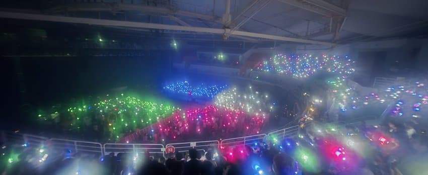 제가 듣기로, 중앙 통제 방식으로는 스탠딩 구역별 4인 4색 퍼포먼스가 기술상 쉽지 않다고 합니다. 응원봉 통제는 중앙에서 좌석 정보를 기반으로 응원봉을 원격 제어하도록 되어 있기 때문입니다. 물론 좌석이 없는 스탠딩석도 중앙에서 블루투스로 응원봉을 통제하는 것이 불가능하지는 않습니다. 그러나 맞닿은 스탠딩 구역 별로 서로 다른 색깔을 송출하는 데에는 어려움이 많다고 합니다.