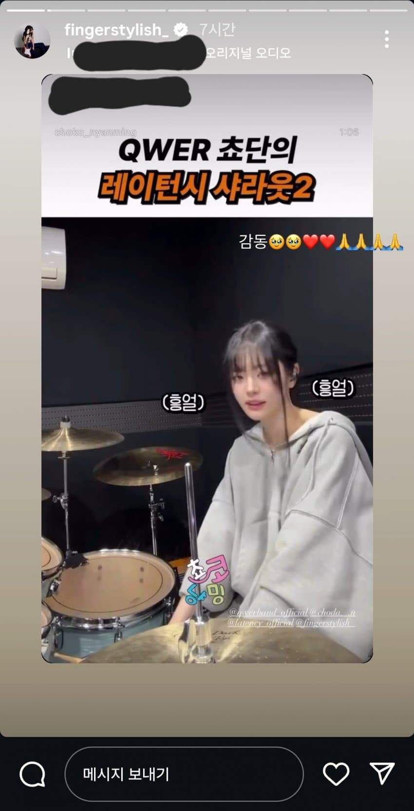 한편 레이턴시가 <사랑이었는데>를 공개한 뒤 며칠 후, QWER의 리더인 쵸단은 개인 라이브 방송에서 두 번째로 레이턴시를 샤라웃했습니다.