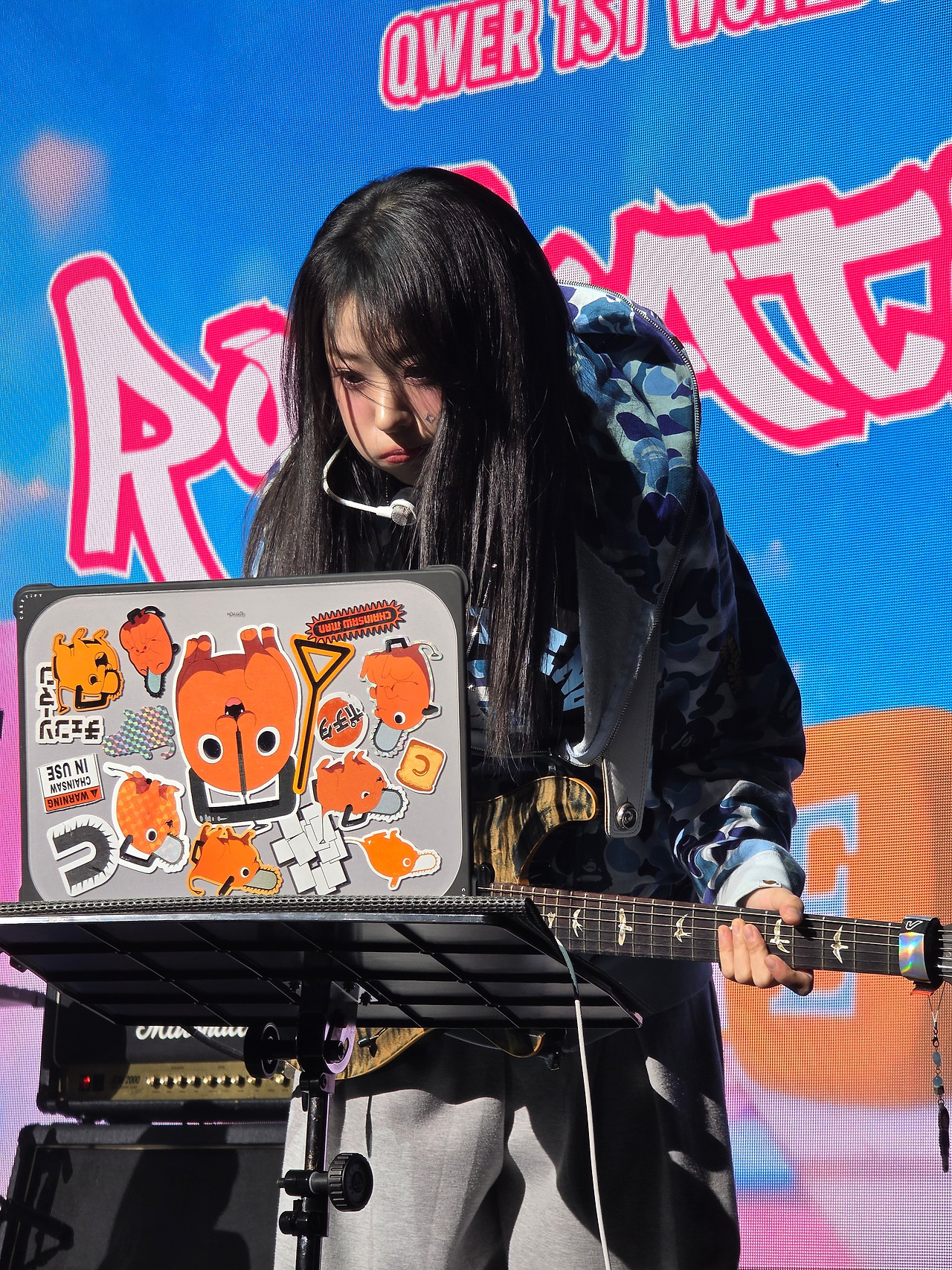 '젭 후쿠오카' 음향 팀은 베이스나 드럼에 비해 히나의 기타 소리를 키우지 않았습니다. 물론 모든 QWER 공연에서 반복되는 일이니, 소속사의 요청이 있었겠지요. 히나야, 힘 내! 충분히 잘하고 있으니 자신감을 가져! 우리 바위게들은 히나의 기타를 '더 멀리 더 크게 모두' 듣고 싶거든. 히나가 <메아리>단 리더이니, 바위게들을 믿고 마음껏 달려 봐. '함께란 이유가 되어 줄 테니!'