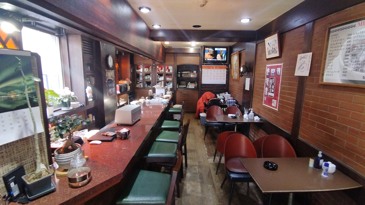 자전거 가게 옆 정문을 열고 들어가니, 우와! 일본 드라마에서 보던 레트로한 일본 다방 바로 그 자체입니다. 심지어 가게를 운영하시는 마스터는 80세를 훌쩍 넘기신 듯하네요. 그 때 멤버가 7명이었는데, 갑자기 덩치 큰 XL 한국인 남성들이 우르르 몰려 들어오니, 당황하신 듯했습니다.