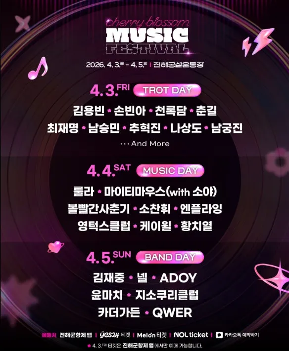 2026년 4월 5일. 식목일이자 일요일인 이 날은 벚꽃으로 유명한 진해에서 [벚꽃군항제]가 열리는 마지막 날입니다. 대한민국 대표 벚꽃축제인 [벚꽃군항제]에서는 4월 3일에서 5일까지 '2026 체리블라썸뮤직페스티벌(Cherry Blossom Music Festival)'이 펼쳐졌는데요. 4월 5일 저녁에는 벚꽃 빛깔 의상을 곱게 차려입은 QWER이 공연했습니다. 저는 비록 가지 못했지만, QWER 사관을 자처하는 만큼 각종 영상과 후기를 통해 인상 깊었던 포인트 몇 개만 기록으로 남기고자 합니다. QWER 팬이 아닌 독자들도 즐겁게 읽으시고 QWER을 '찍먹'할 생각이 생기신다면 좋겠네요.