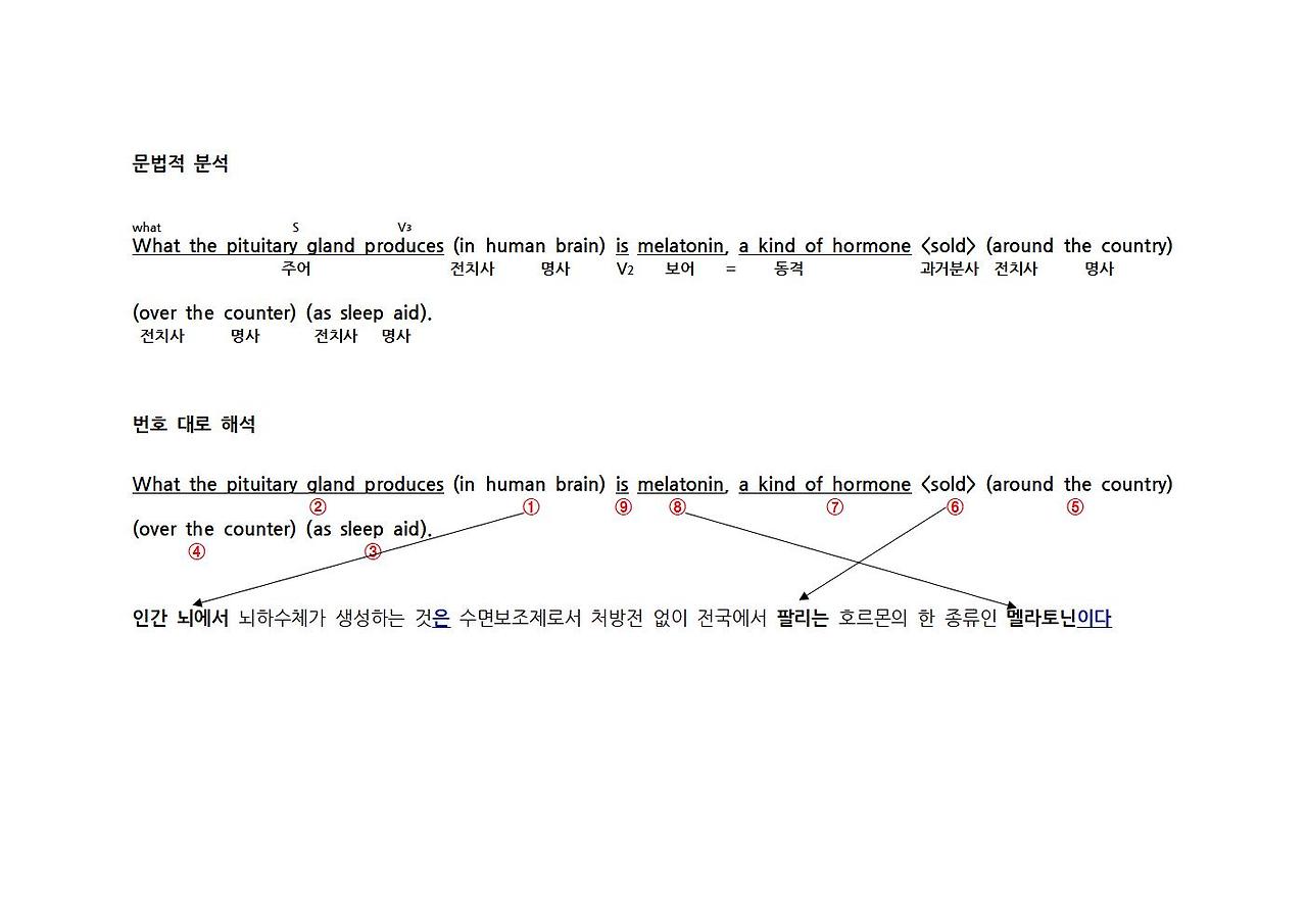 뇌하수체가 생산하는 것 /인간에 뇌에서/ 멜라토닌이다/ 호르몬의 종류/ 전국적으로 팔린다/ 처방전 없이 / 수면 보조제로서
