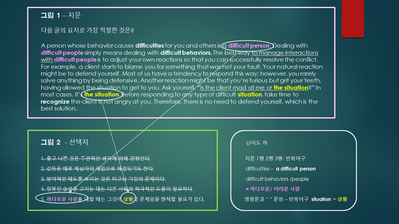 그림 1 지문과 그림 2 선택지의 반복 단어 찾기