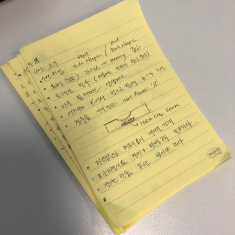 부피가 작아서였을까? 베개는 3번 정도의개선 작업을 거치면 마음에 꼭 드는 제품이 나올 줄 알았다. (매트리스는 총 10번의 프로토타입을 거쳐서 출시됨) 지금 생각하면 터무니없는 생각이었다. 베개는 매트리스보다 더 세심한 기획과 지겨울 정도로 반복되는 과정이 필요한 제품이었다. 우리나라 사람 모두가 베개에 대해서는 자기만의 감성, 원하는 느낌이 있었다.