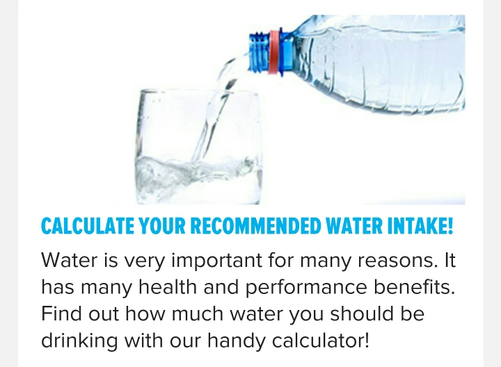권장 섭취 칼로리 뿐 아니라 내 몸무게에는 하루에 물을 얼마나 마셔야하는지 계산해주는 기능도 있다. 143 온즈면 도대체 몇병을 마셔야 하는 거야...작은 오백미리 생수통이 16.9온즈인데. 다행히 나는 물 마시는 것은 좋아한다.
