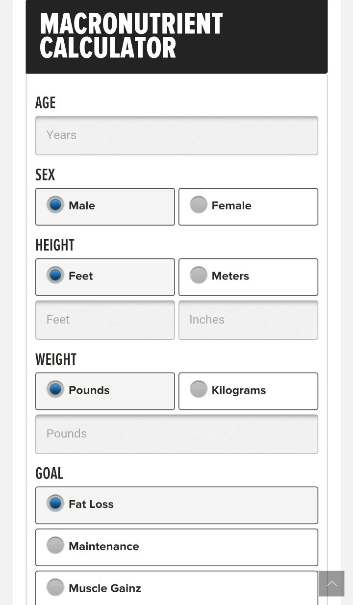 피트니스 웹사이트,www.bodybuilding.com 에 들어가 'calculator'를 검색하면 결과하단에 micronutrient 가 나온다 (하단 사진 참조). 거기에 나이,키, 몸무게등을 입력 후, 지방을 뺄건지 (fat loss),유지를 할 것인지 (maintain), 근육을 늘릴 것인지(muscles gainz)를 입력하면 하루에 각 몇 그램의 단백질, 탄수화물, 그리고 지방을 섭취해야하는지 결과가 나온다.