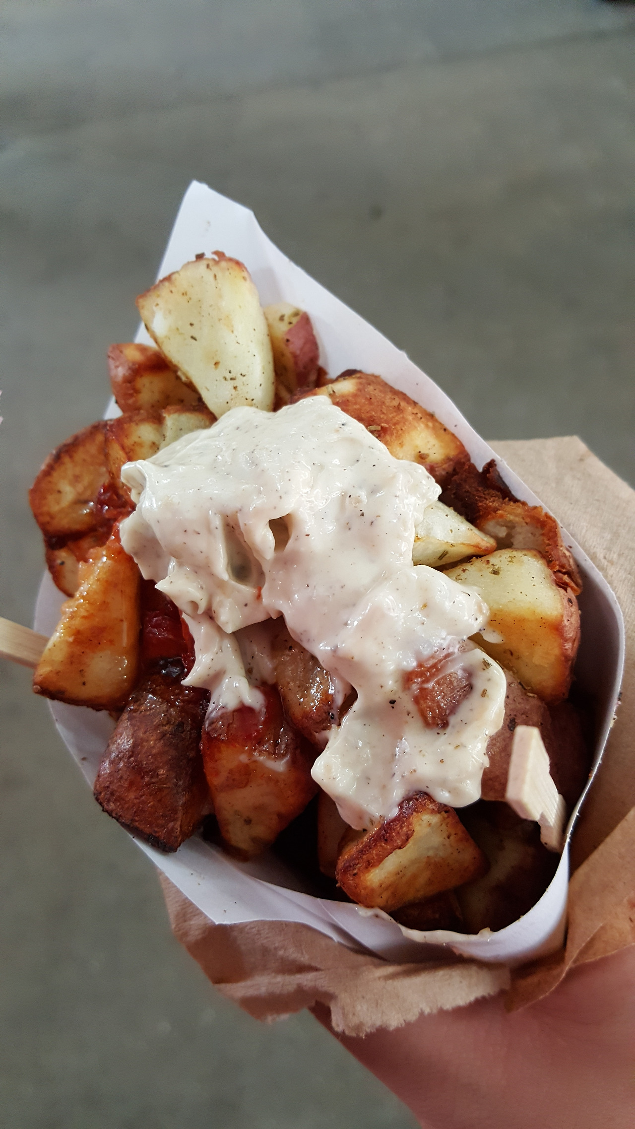 달콤한 빵을 먹고 향한 곳은 프렌치 마켓! 악어 육포, 싸구려 기념품 부터 깜짝놀라게 맛있는 음식들 까지! 한 바퀴를 훅 돈 후 각자 먹고 싶은 것을 골라 다시 만나기로 했다. 내가 산것은 Vegan 포테이토 프라이. 이름은 프라이지만 정사각형으로 잘라 구운 감자다. 구운 감자에 달콤한 타이 칠리 소스와 짭짤한 갈릭 페퍼 마요를 뿌려 먹으니 정말 맛있다!친구들이 사온 것은 치즈가게에서 파는 샌드위치, 해산물 잔뜩인 검보 (Gumbo), 그리고 잘 나간다는 베이컨 치즈 크레페. 치즈 가게 샌드위치는 진짜 별거없이 야채에 햄 그리고 치즈를 넣었는데 한입 베어 무는 순간, 고소한 치즈가 입 안에 확 퍼진다. 이 짭짤한 음식들에 최고의 궁합을 자랑하는 화이트 와인 샹그리아!적당한 단 맛이 입안을 헹구어 주며 최고의 행복감을 선사했다.