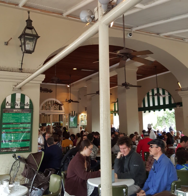 카페 뒤 몽드는 역시나 줄이 길었다. 줄이 2개라 뭐야 싶었는데 알고보니 앉아서 먹는 줄과 픽업만 하는 투고라인 줄이었다. 어디가 빠를지 고민 했으나, 별차이 없더라. 되려 우리와 비슷하게 줄 선 팀을 보니 앉아서 먹는 우리가 더 빨랐던 것 같다. 1인분에 3개씩 나오는 비그넷(Belgnet). 하얀 설탕가루를 듬뿍 얹은 도넛인 이 빵이 여기 유일한 메뉴이자 명물이다. 달달한 찹쌀 도너츠의 느낌! 현금만 받는대서 당황했지만 다행히 일행이 현금이 있었다. 역시 이런 여행지는 현금을 챙겨와야해...안에 손님이 많아 서비스를 기대하기는 어려우니 앉자마자 다 주문해야한다. 주문 받고 음식가져다 준 후에는 다시 오지 않는다. 하지만 긴 줄과 복작댐을 잊게하는 달달한 비그넷! 사진을 보니 또 먹고싶다.
