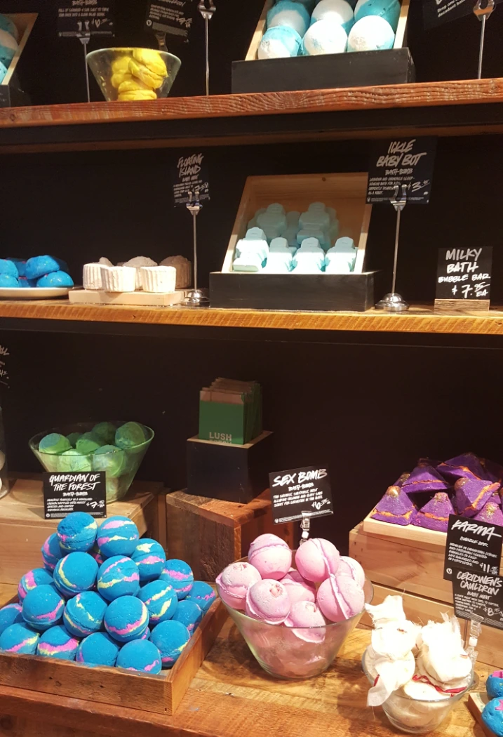 LUSH는 한국에서도 유명한 친자연주의 가게. 하지만 내가 사는 곳에는 매장이 없어,뉴 올리언즈 프렌치 쿼터 가게를 찾았다. 원체 목욕을 좋아하고 입욕제 사용을 즐기는 터라 LUSH에서 신이나서 쇼핑을 했다. 젤리 샤워젤도, 태피 사탕 같은 클렌져도 탐났지만, 물에 띄워 놓으면 꽃이 뜬다는 sex bomb 배스 볼과 다른 향기로운 볼들을 구입했다.